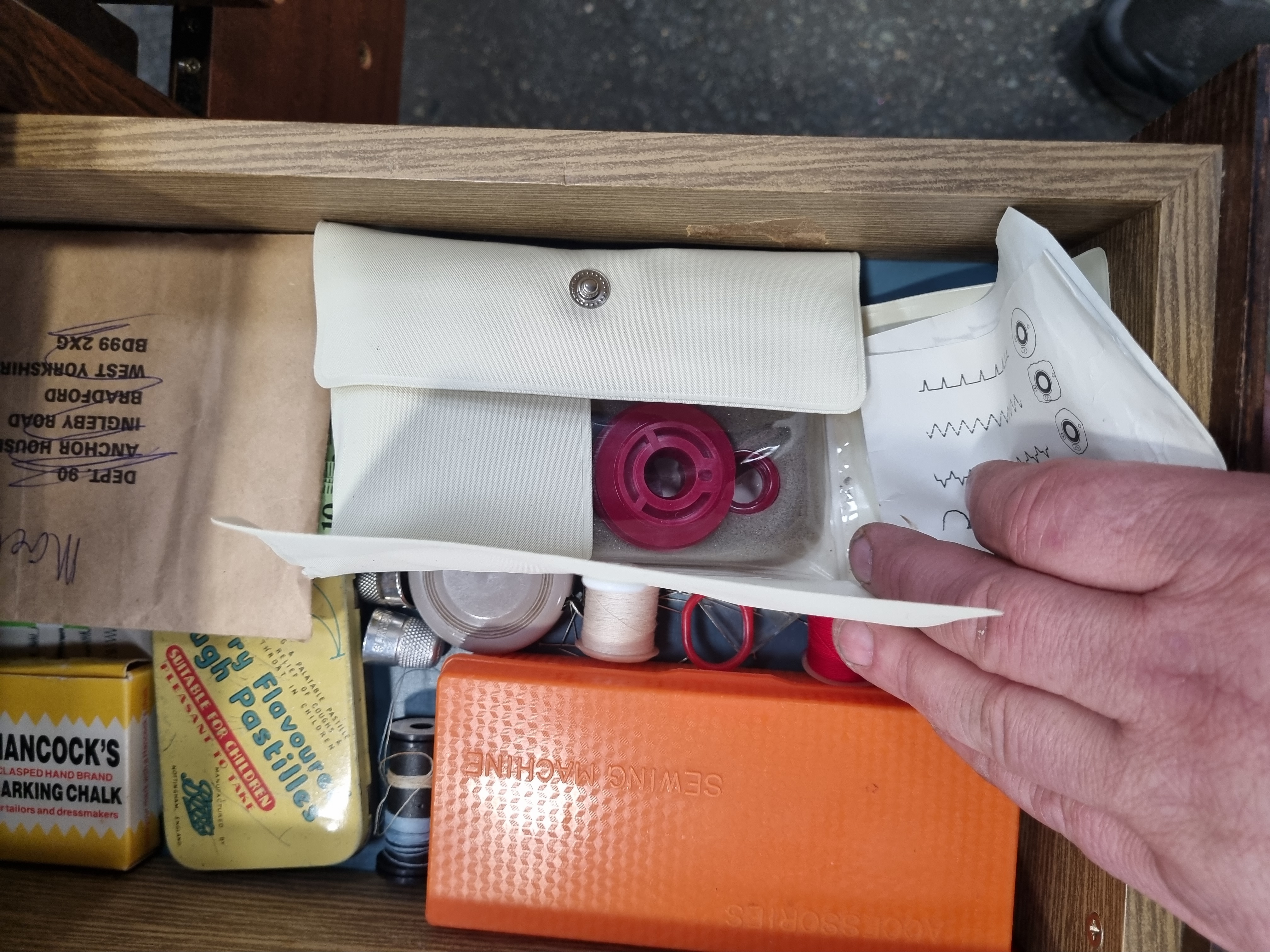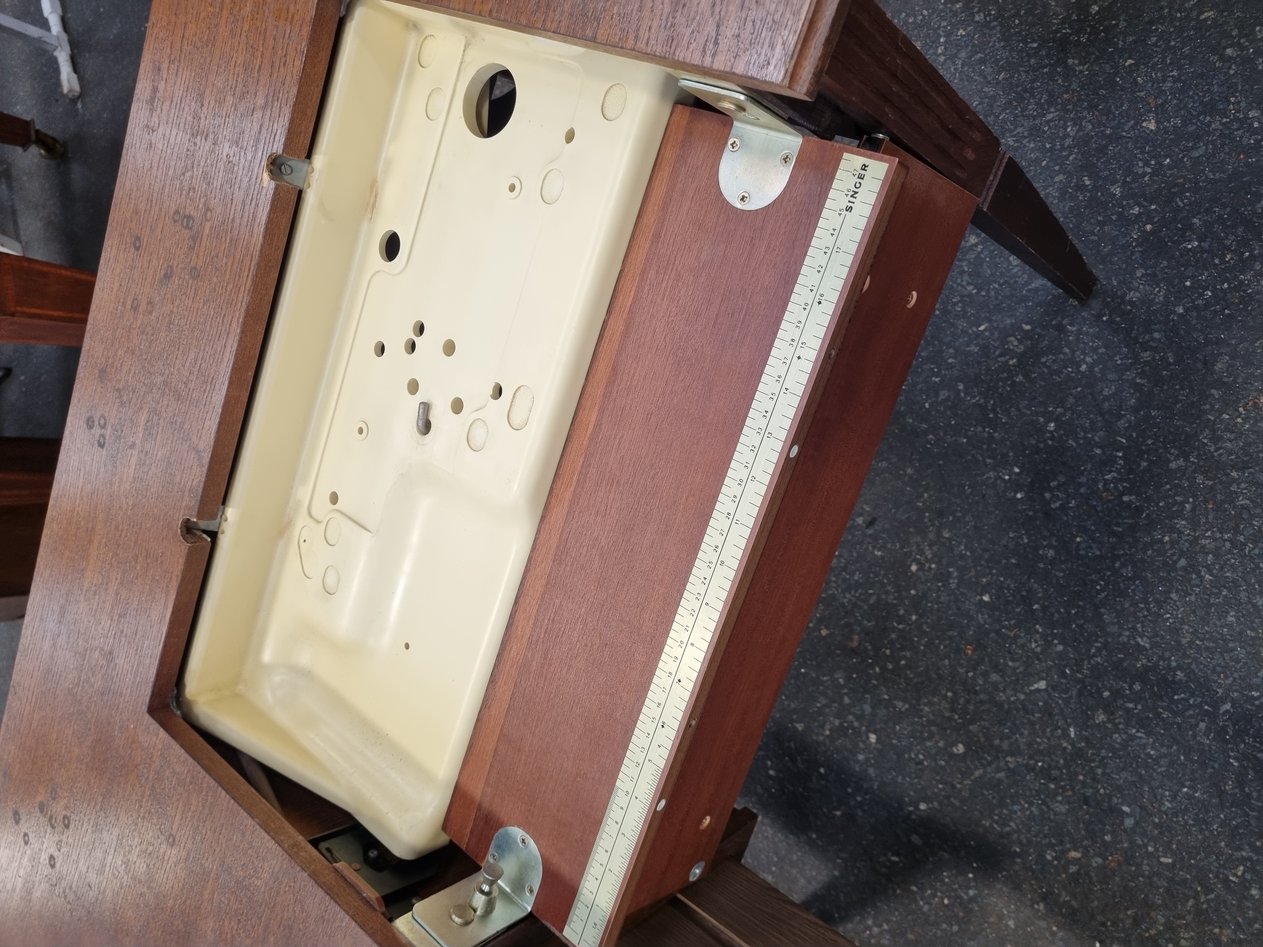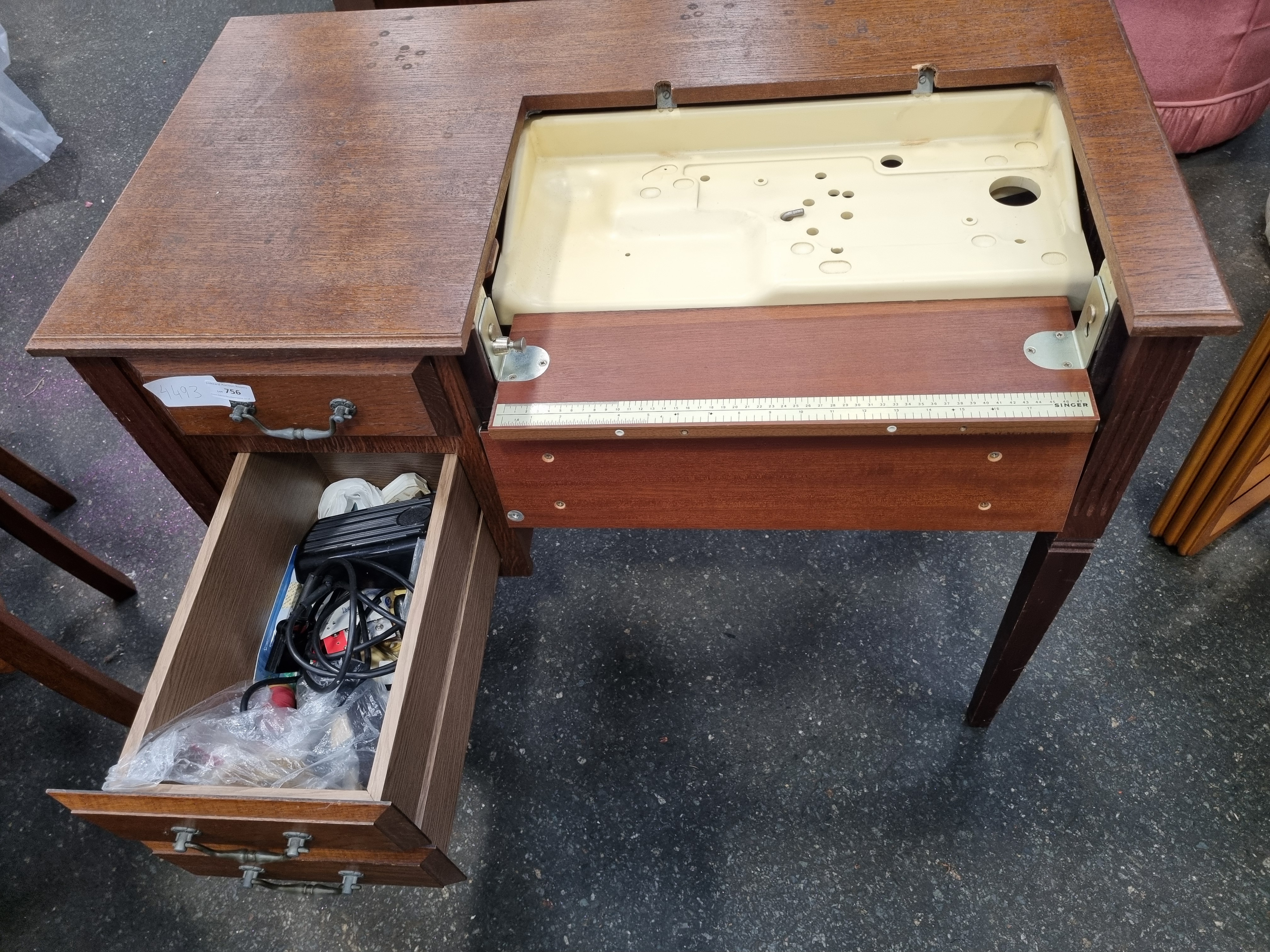 Lot 756: An Alfa Z336BH Sewing Machine with Case and a Singer Sewing Table