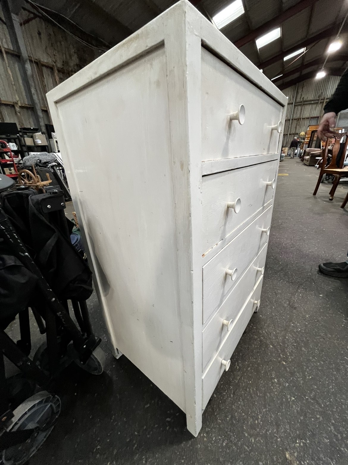 Lot 762: A mid-20th-century white-painted five-drawer chest of drawers