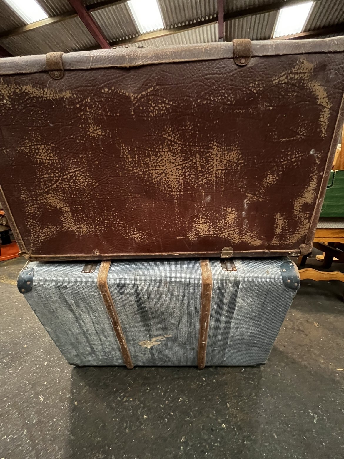 Lot 766: A Trio of Items comprising Two Vintage Travelling Trunks and a Square White Panel