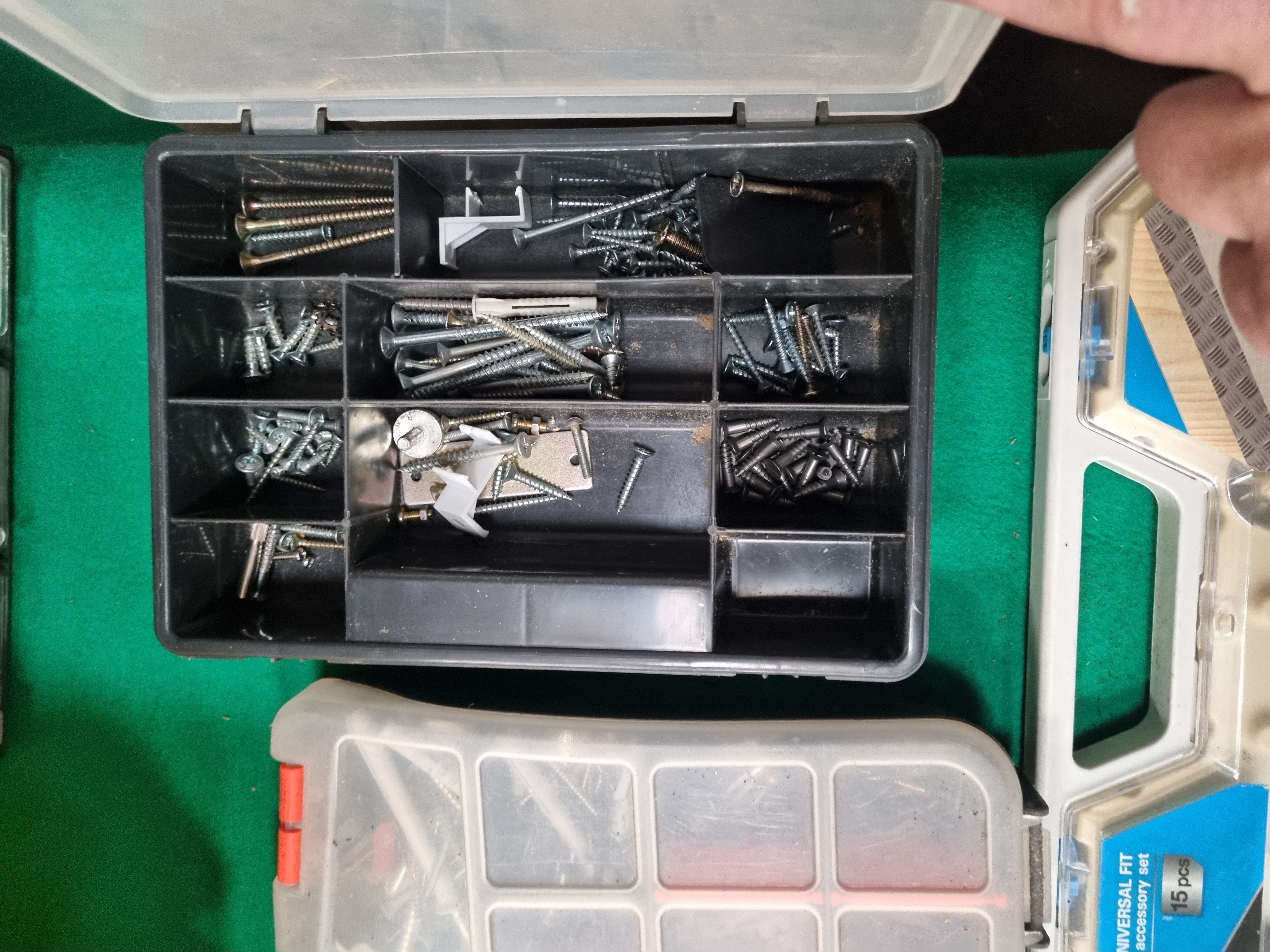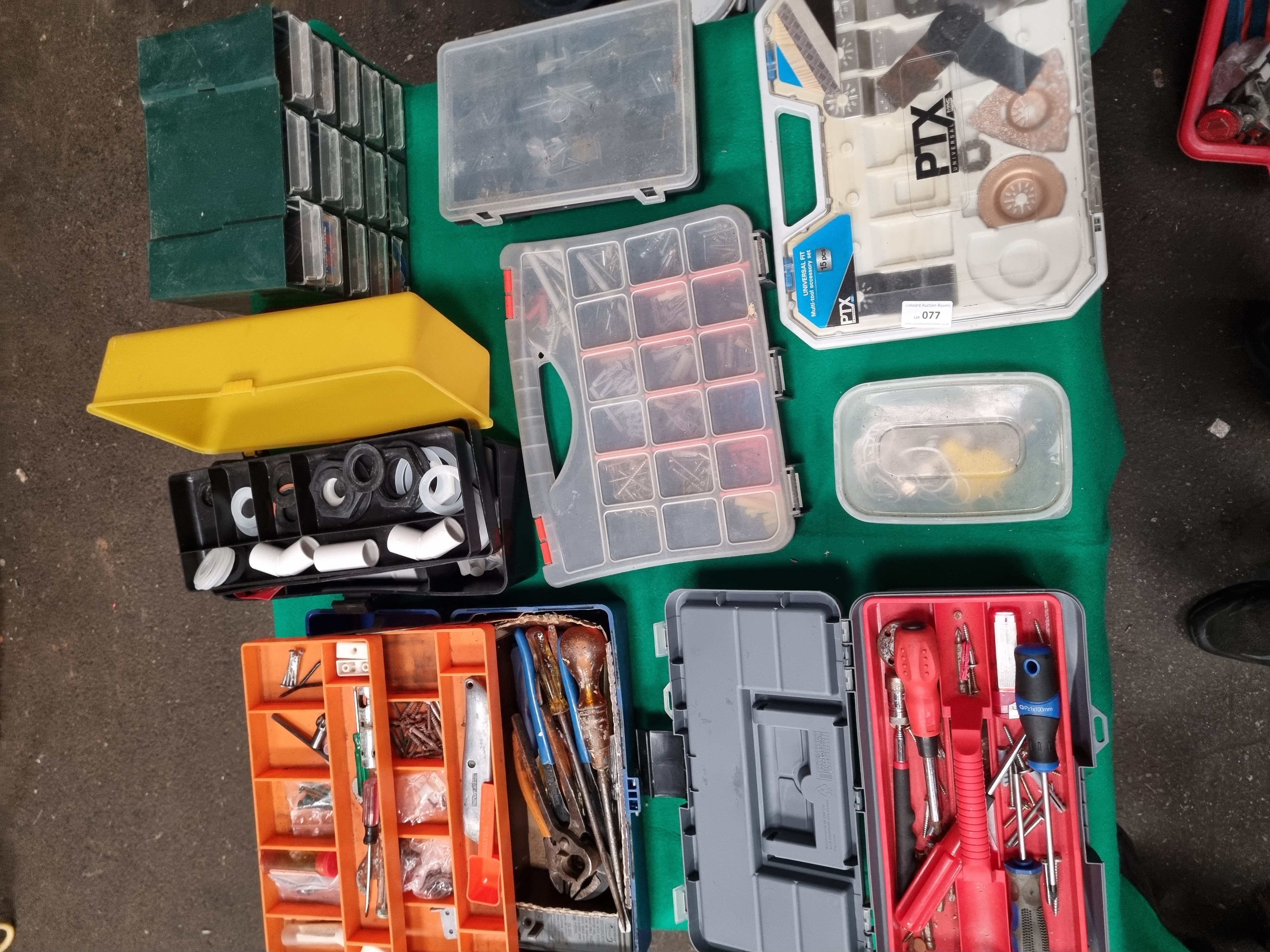 Lot 77: An Assortment of Domestic Hand Tools and Hardware Organisers