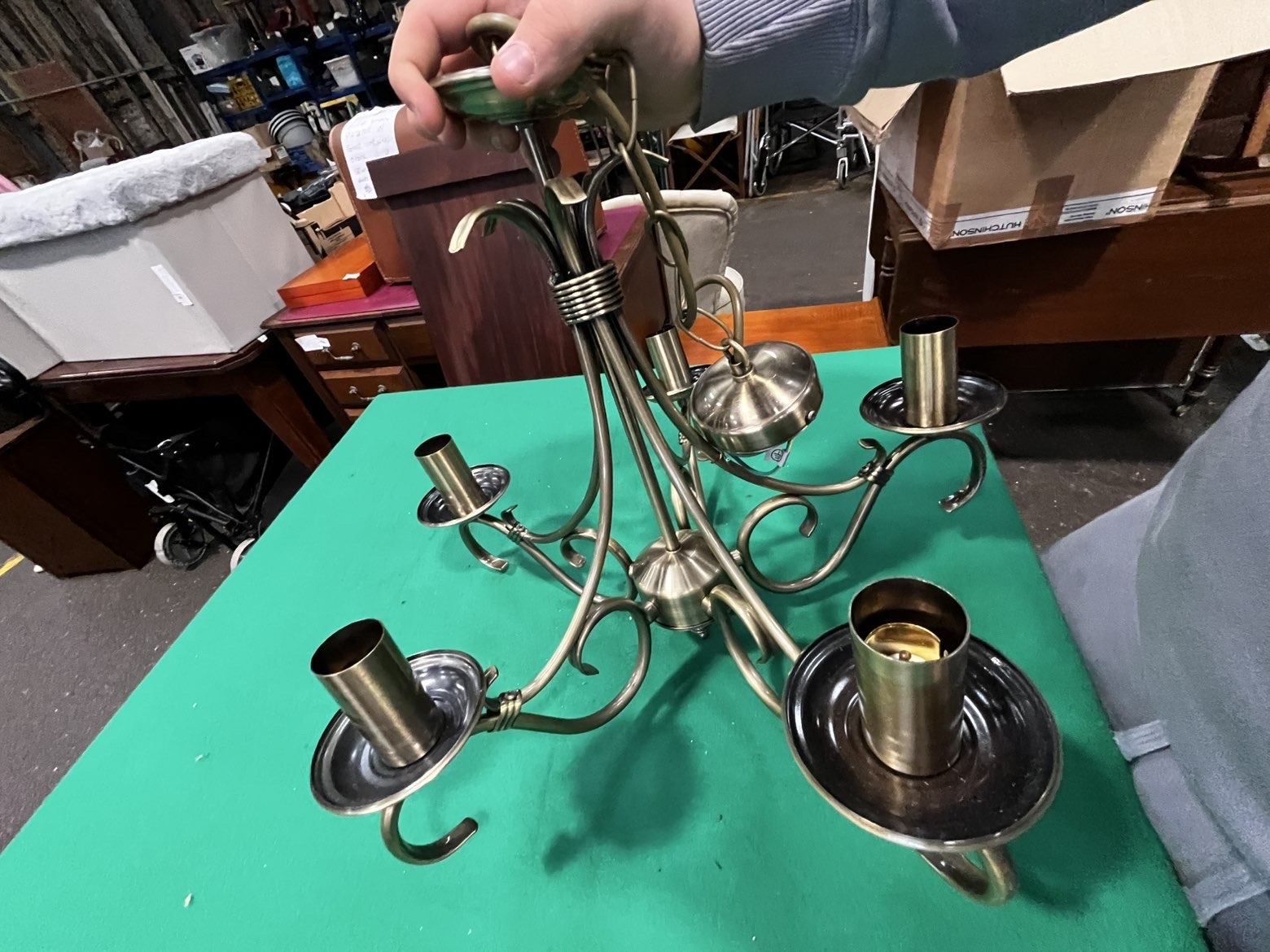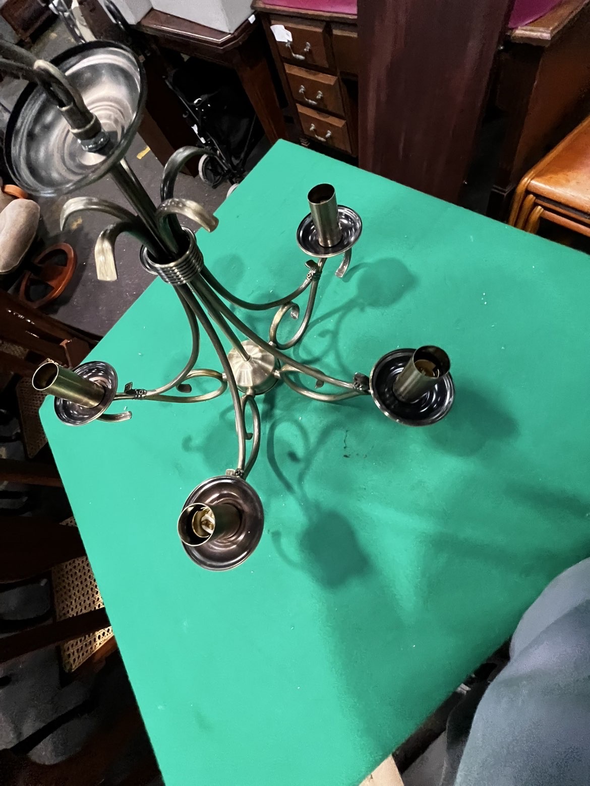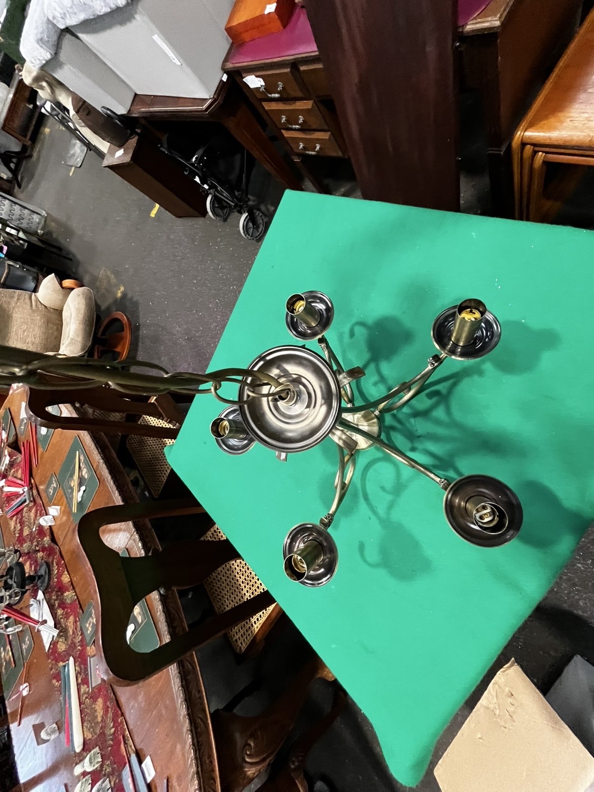 Lot 779: Endon Lighting Five-Arm Antique Brass Style Chandelier