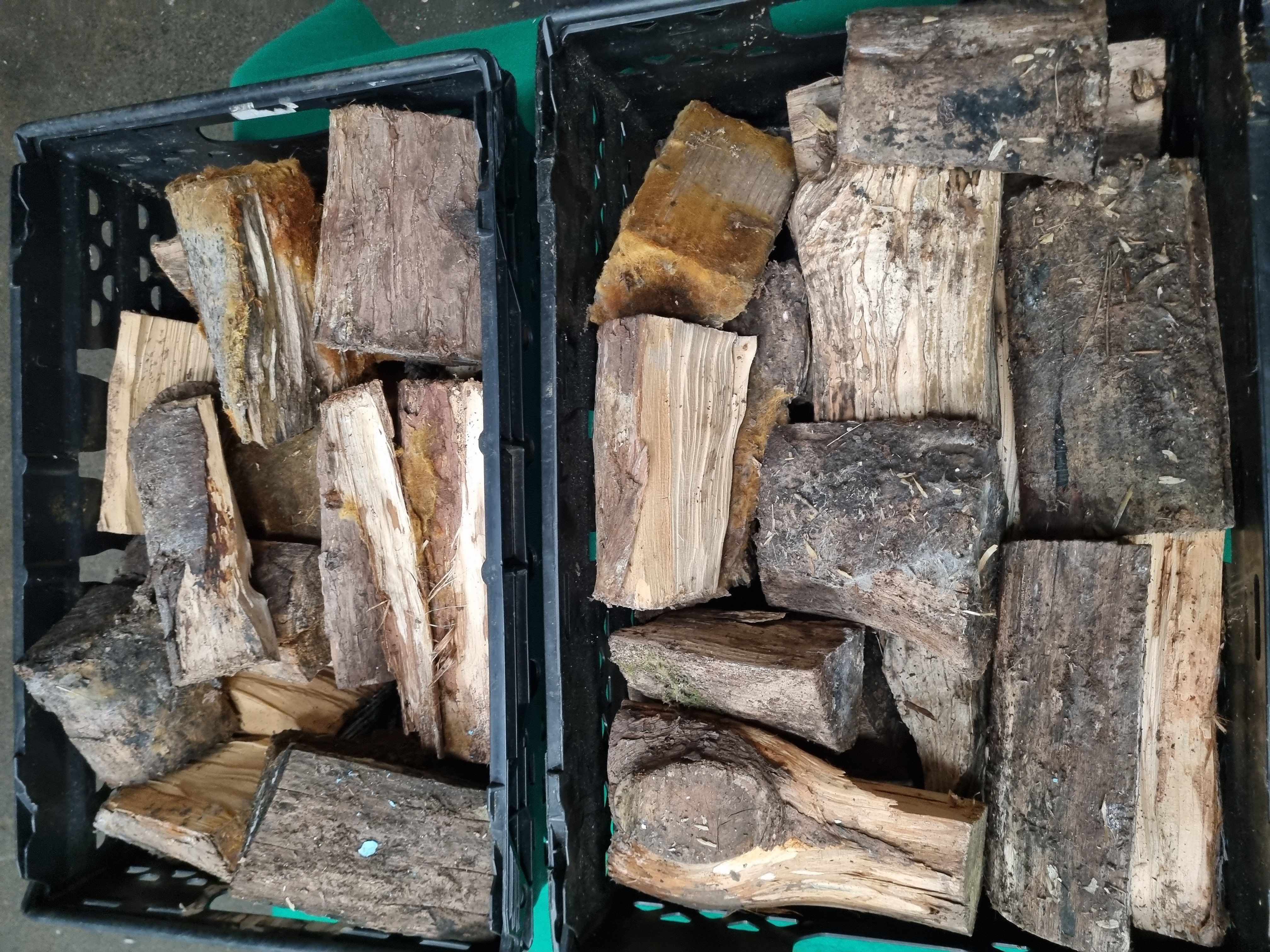 Lot 78: A Collection of Seasoned Firewood Logs in Two Crates