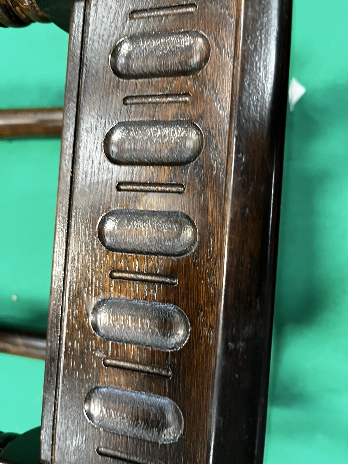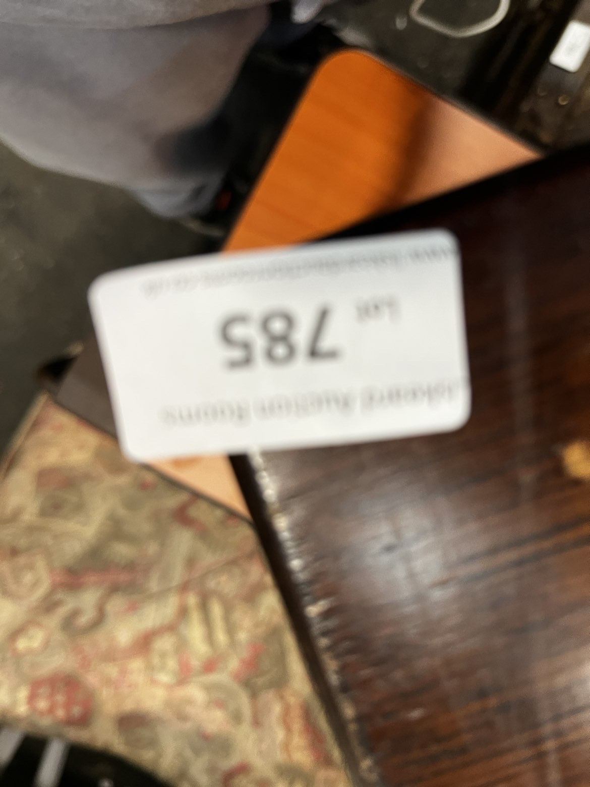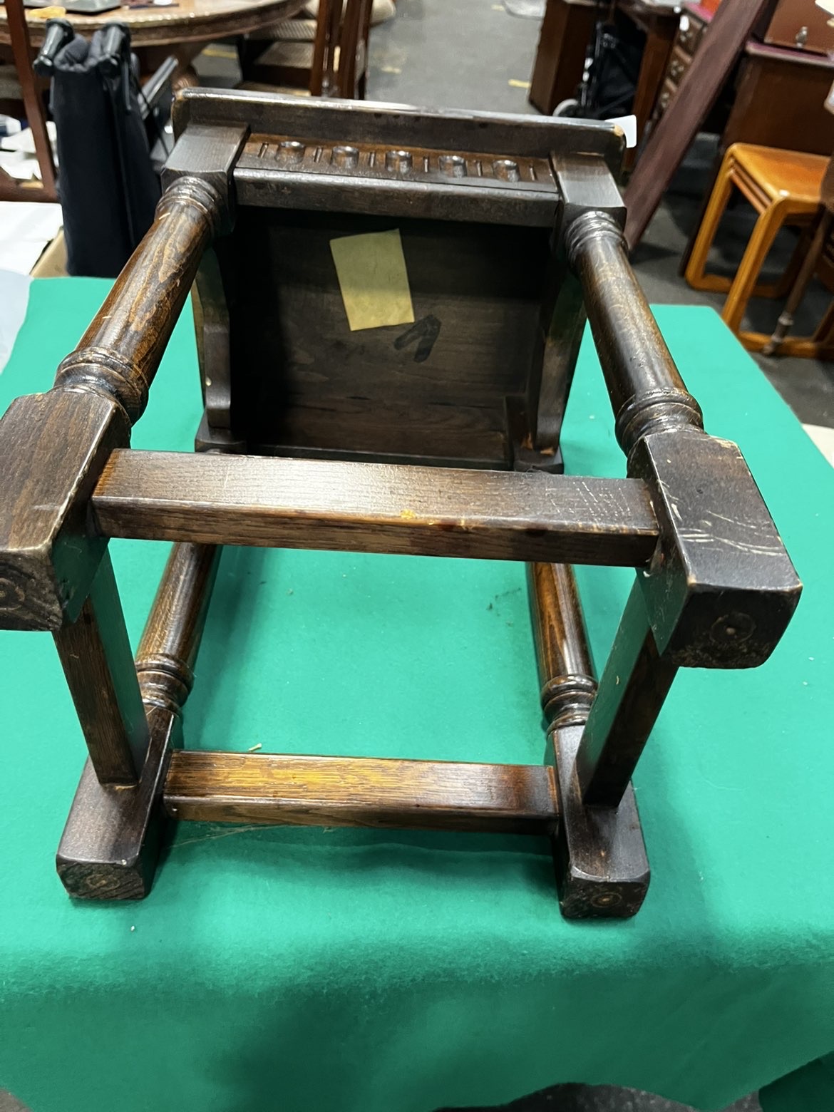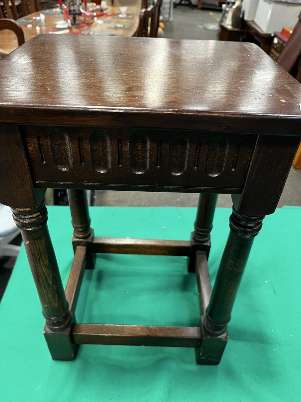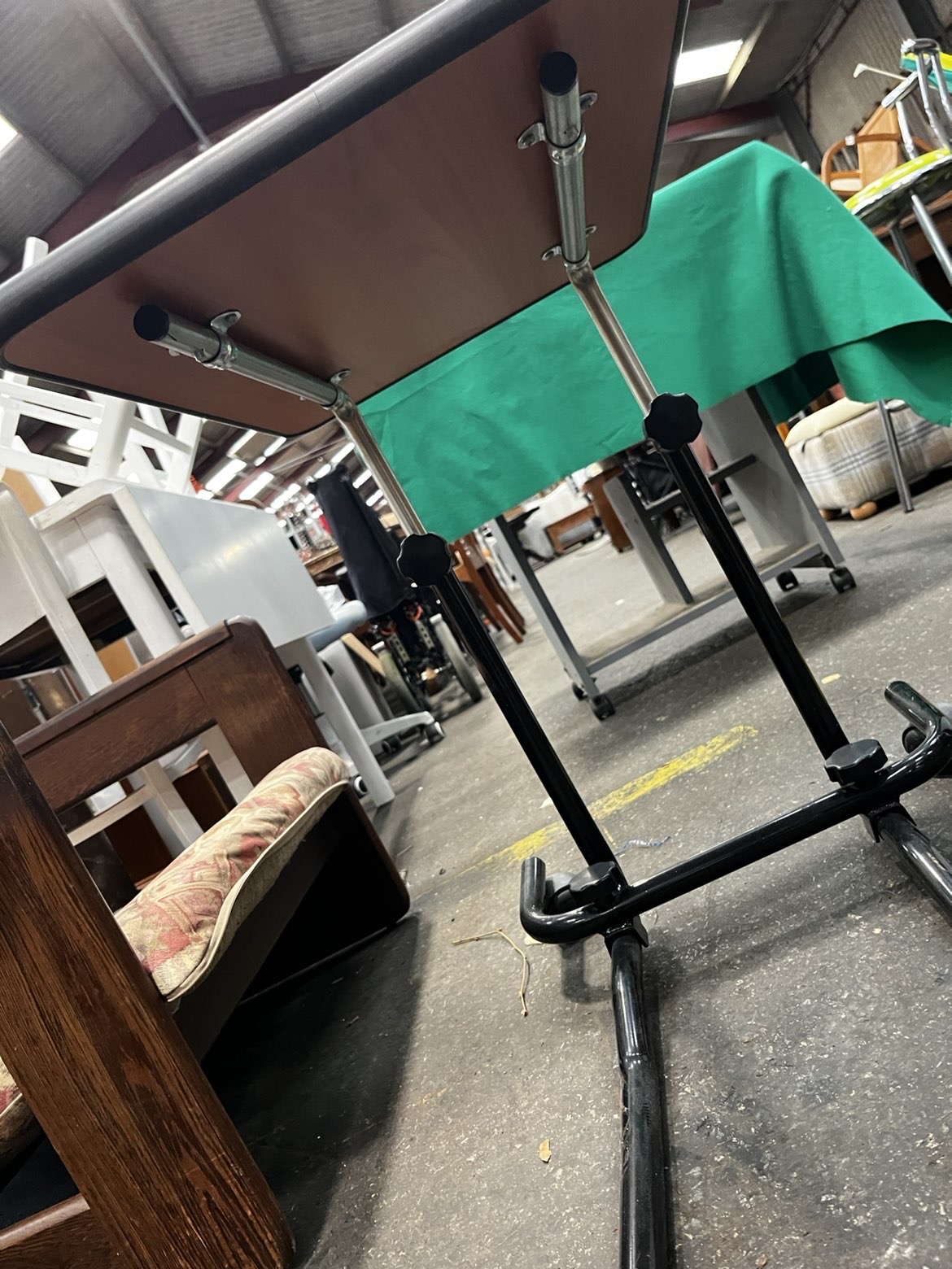 Lot 785: Two tables comprising a reproduction oak occasional table in the Jacobean style and a modern adjustable utility table