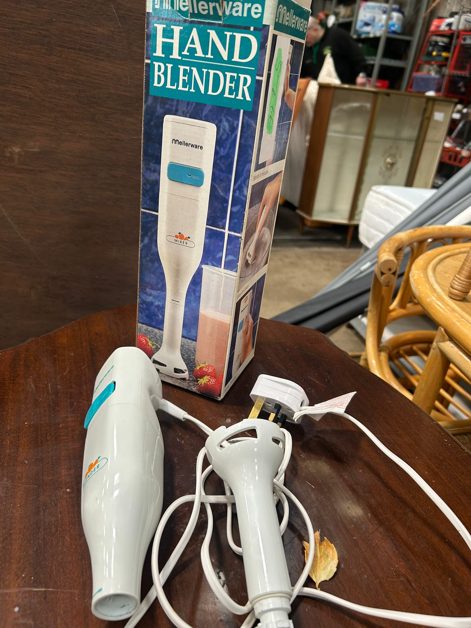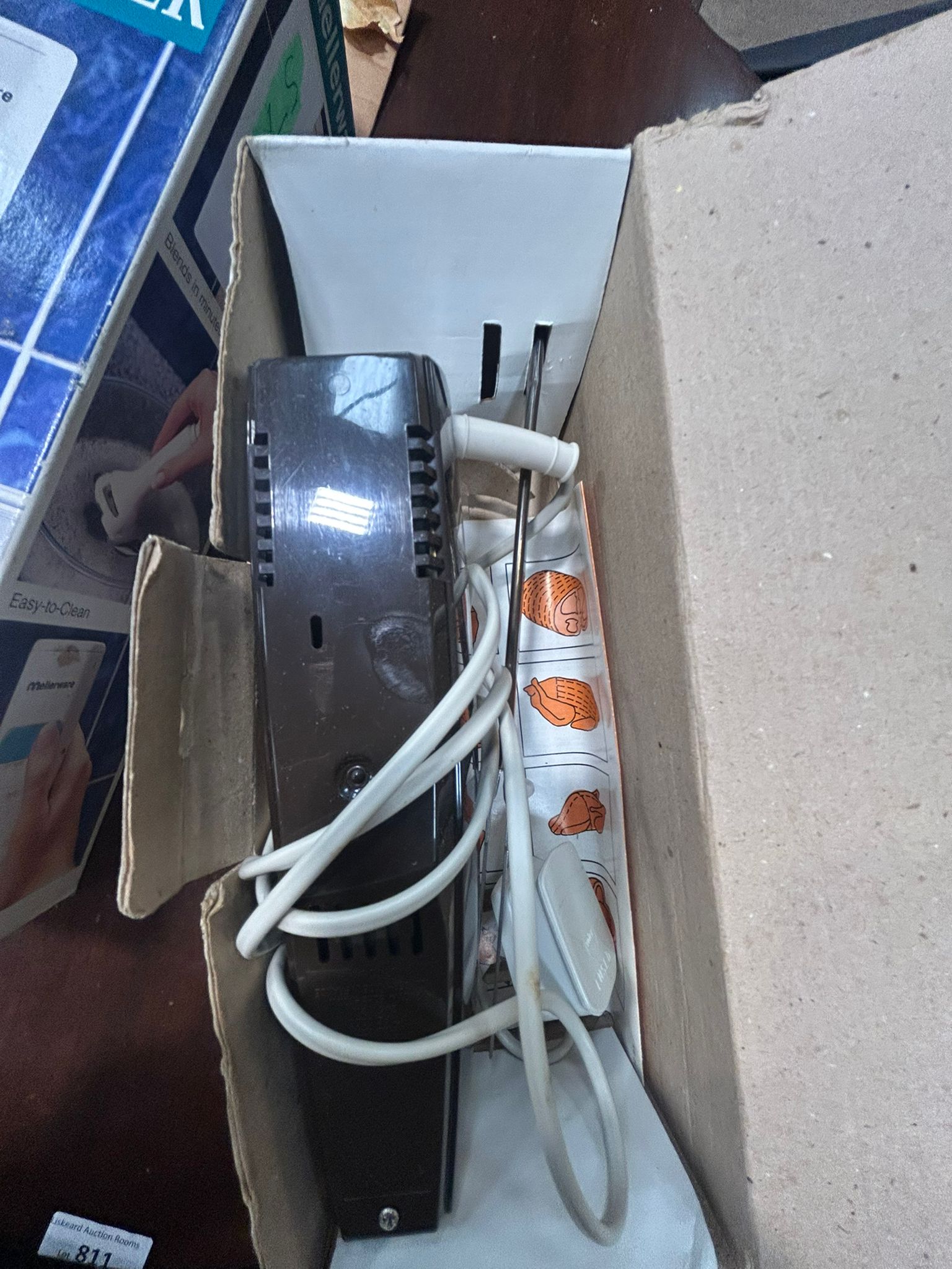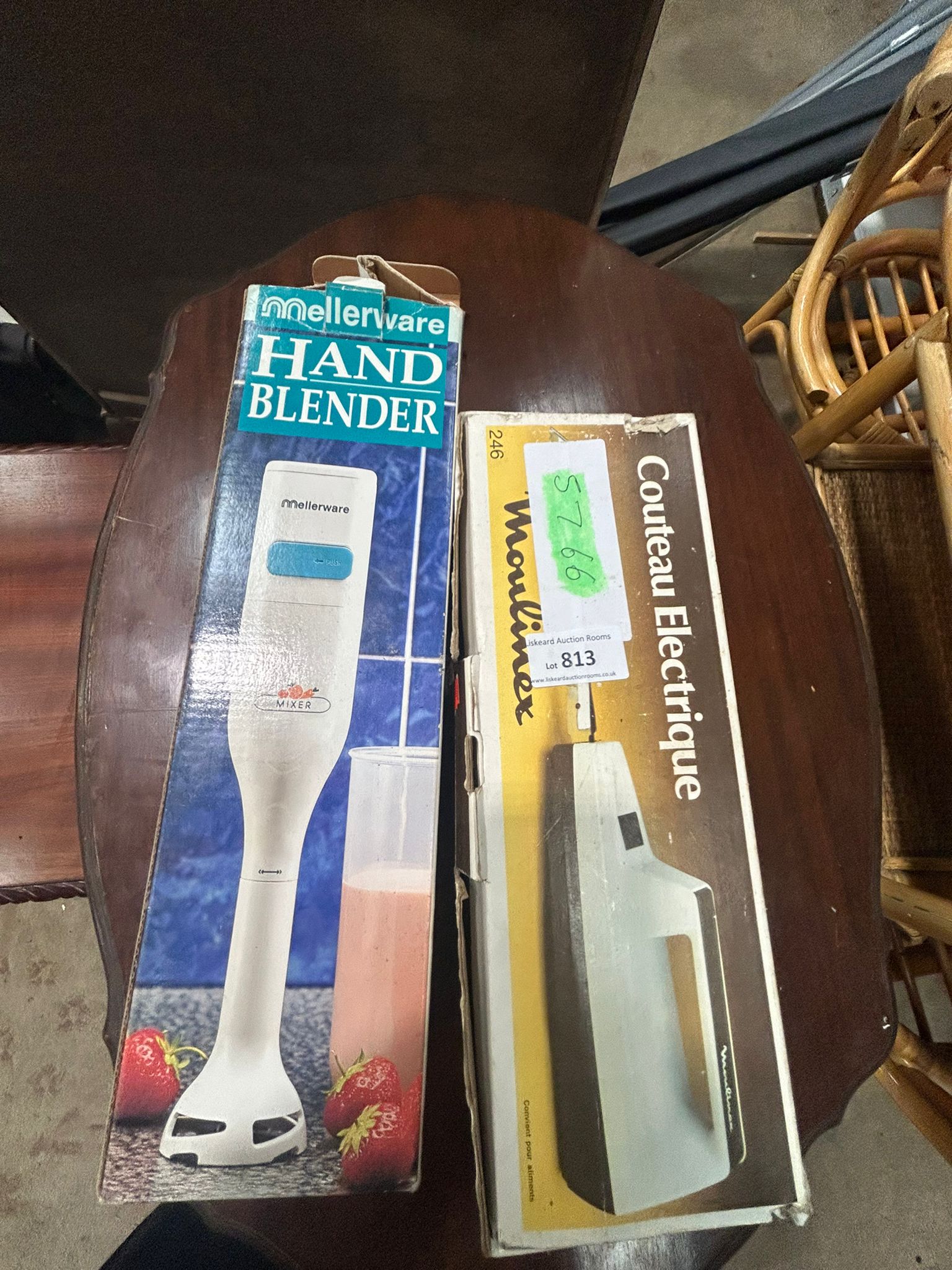 Lot 813: Two boxed vintage kitchen appliances comprising a Mellerware hand blender and a Moulinex electric carving knife