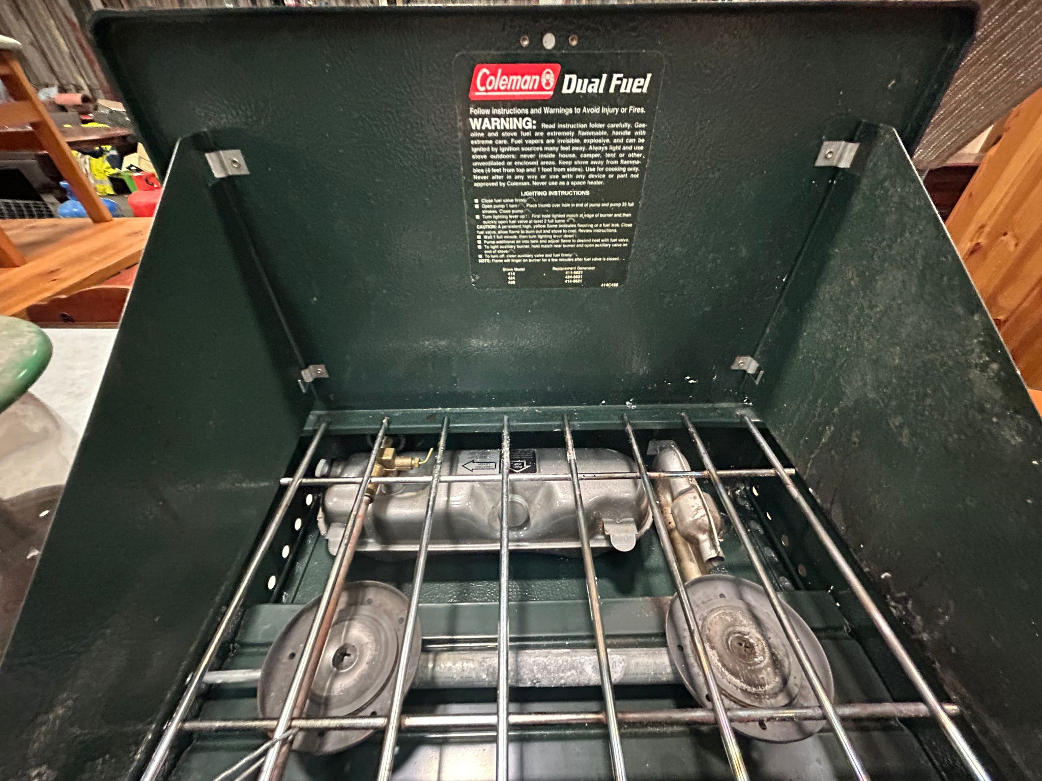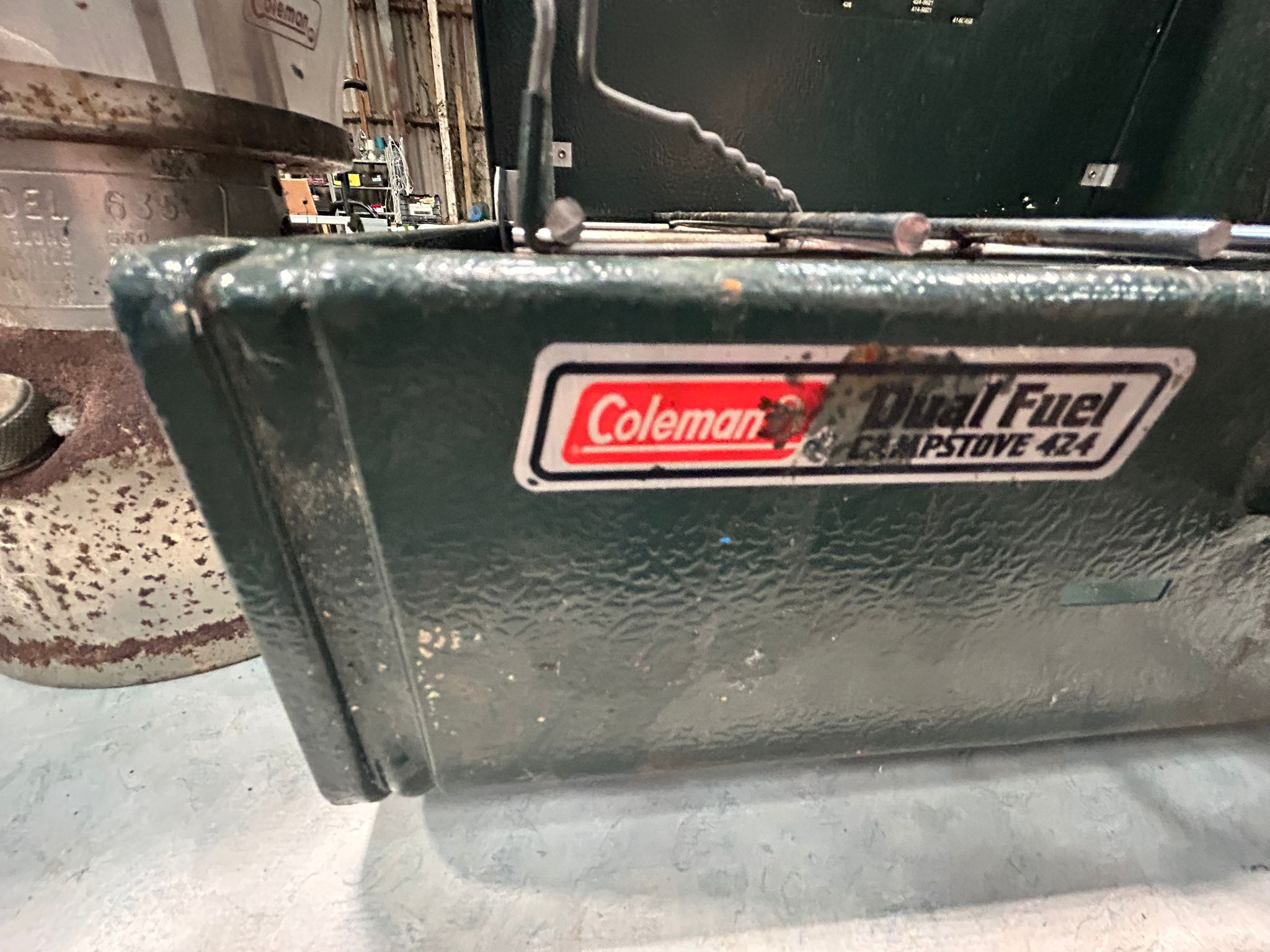 Lot 819: A Coleman Dual Fuel Campstove 424 and a Model 635 Pressure Lantern