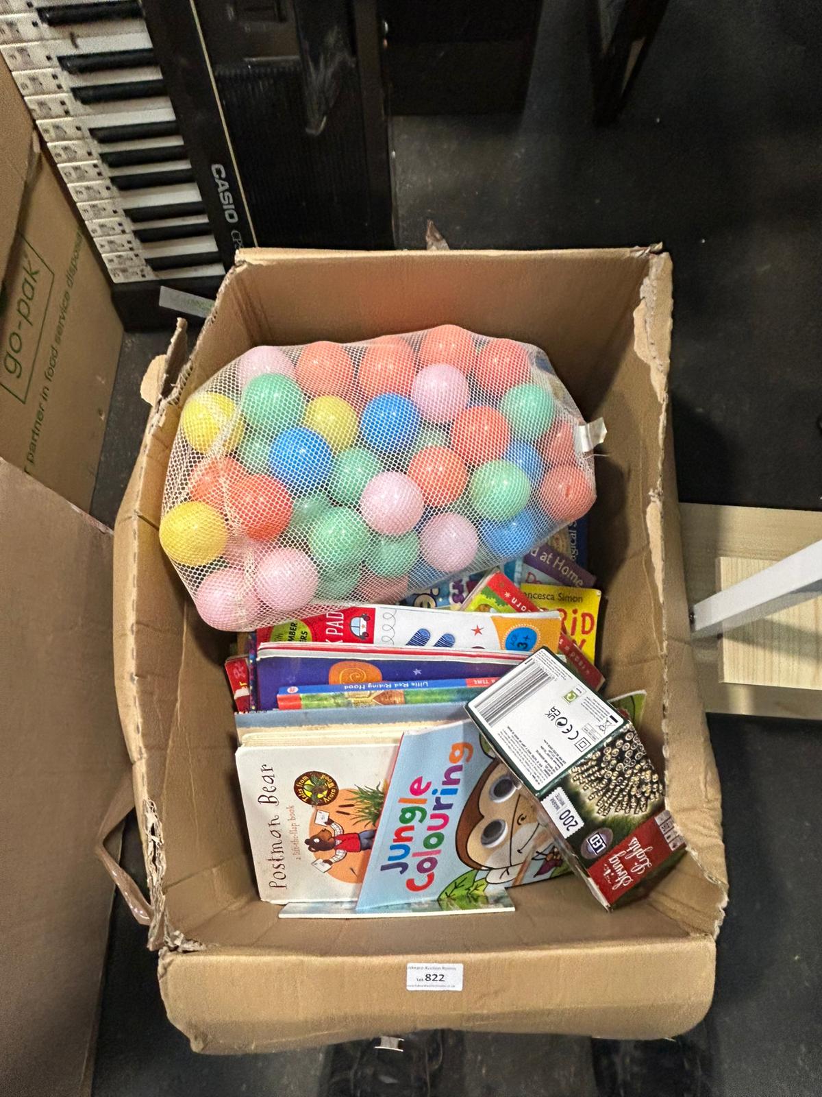 Lot 822: Lot 822: Two Boxes containing an Assortment of Household Goods, Children's Books, and Toys