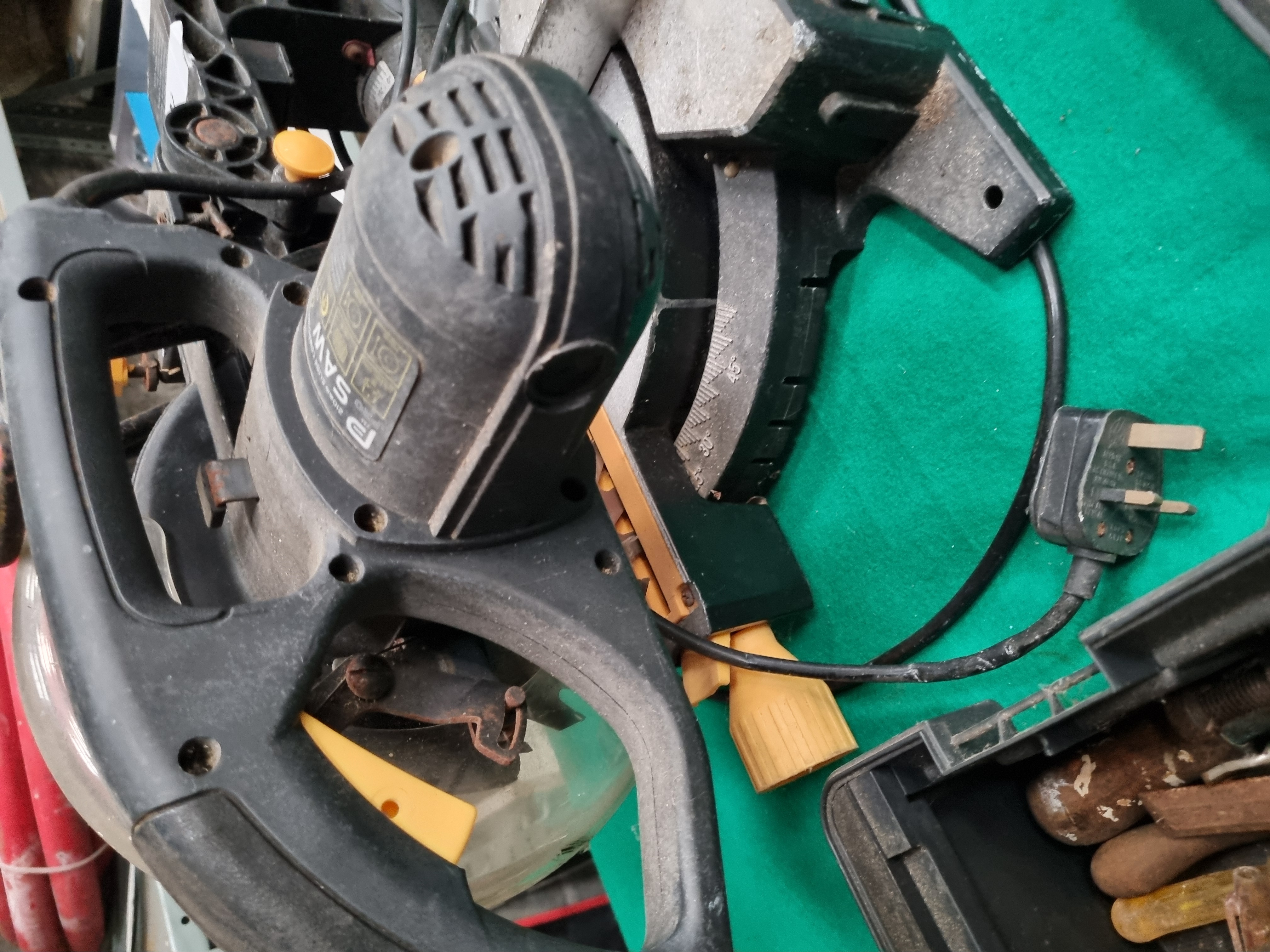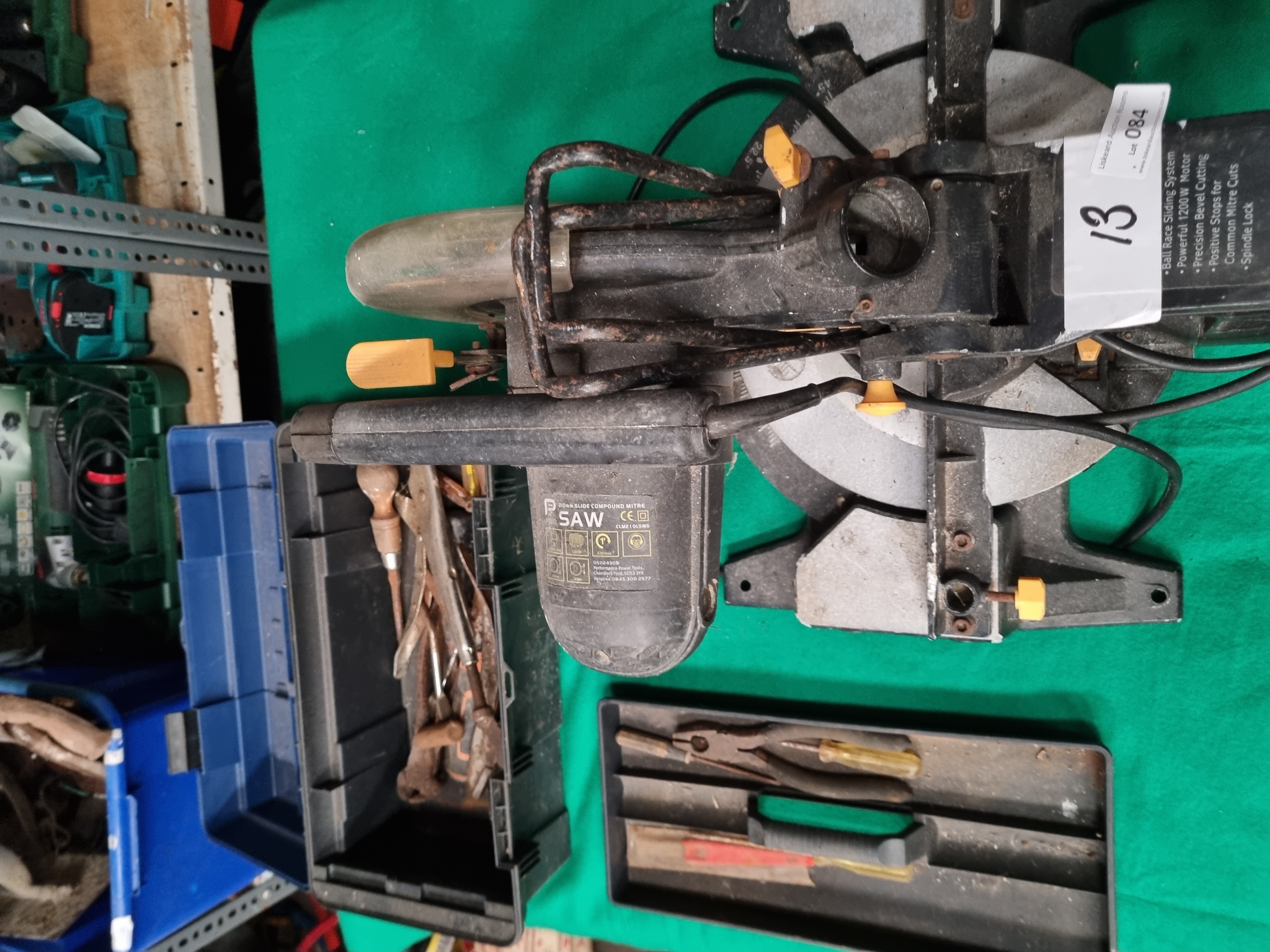 Lot 84: A Performance Power Slide Compound Mitre Saw and an Assortment of Hand Tools