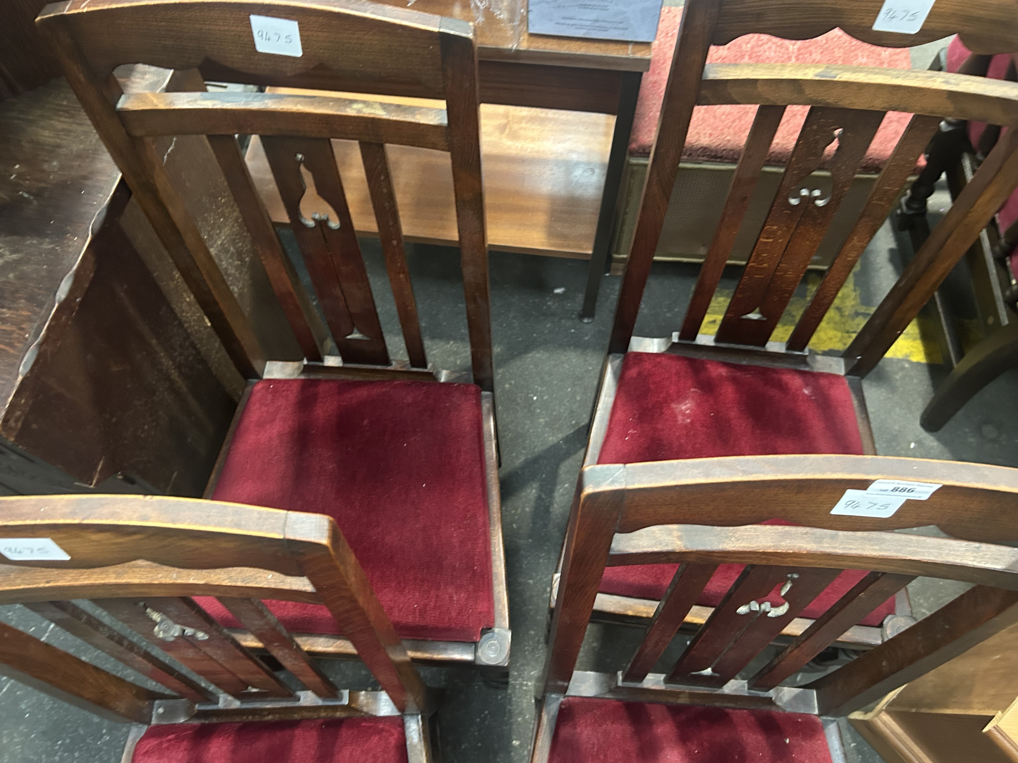 Lot 886: A set of four Arts and Crafts style oak dining chairs