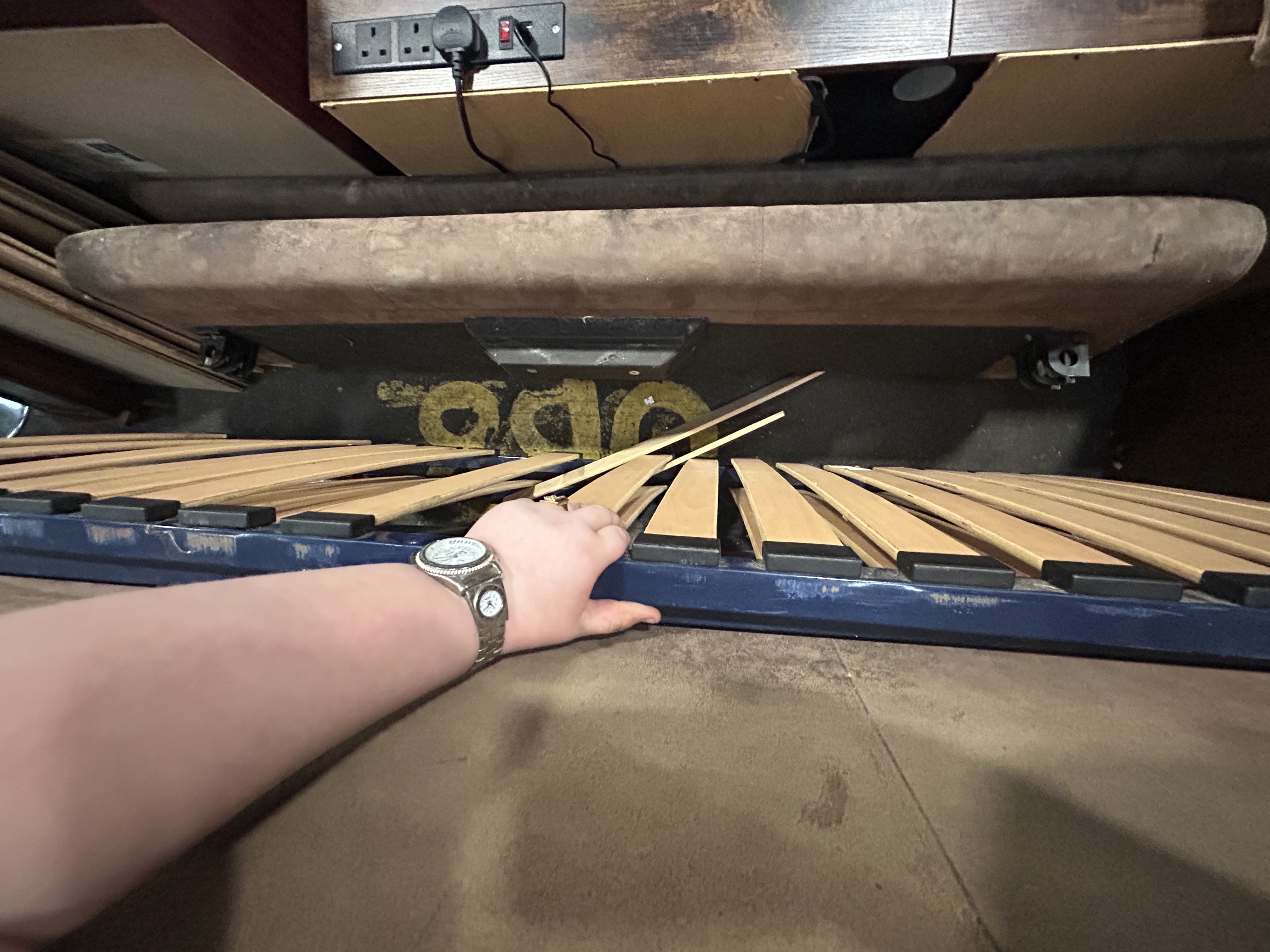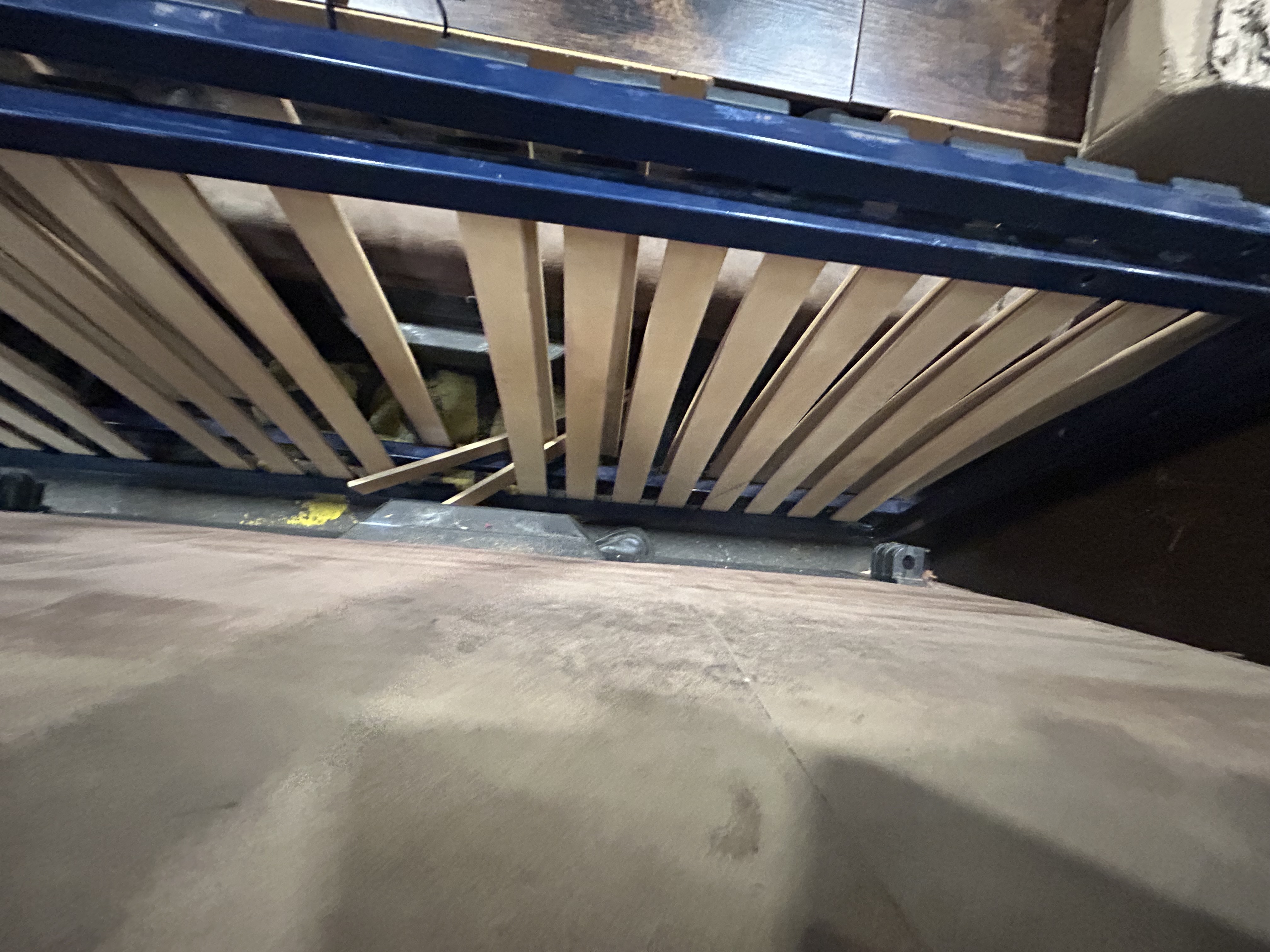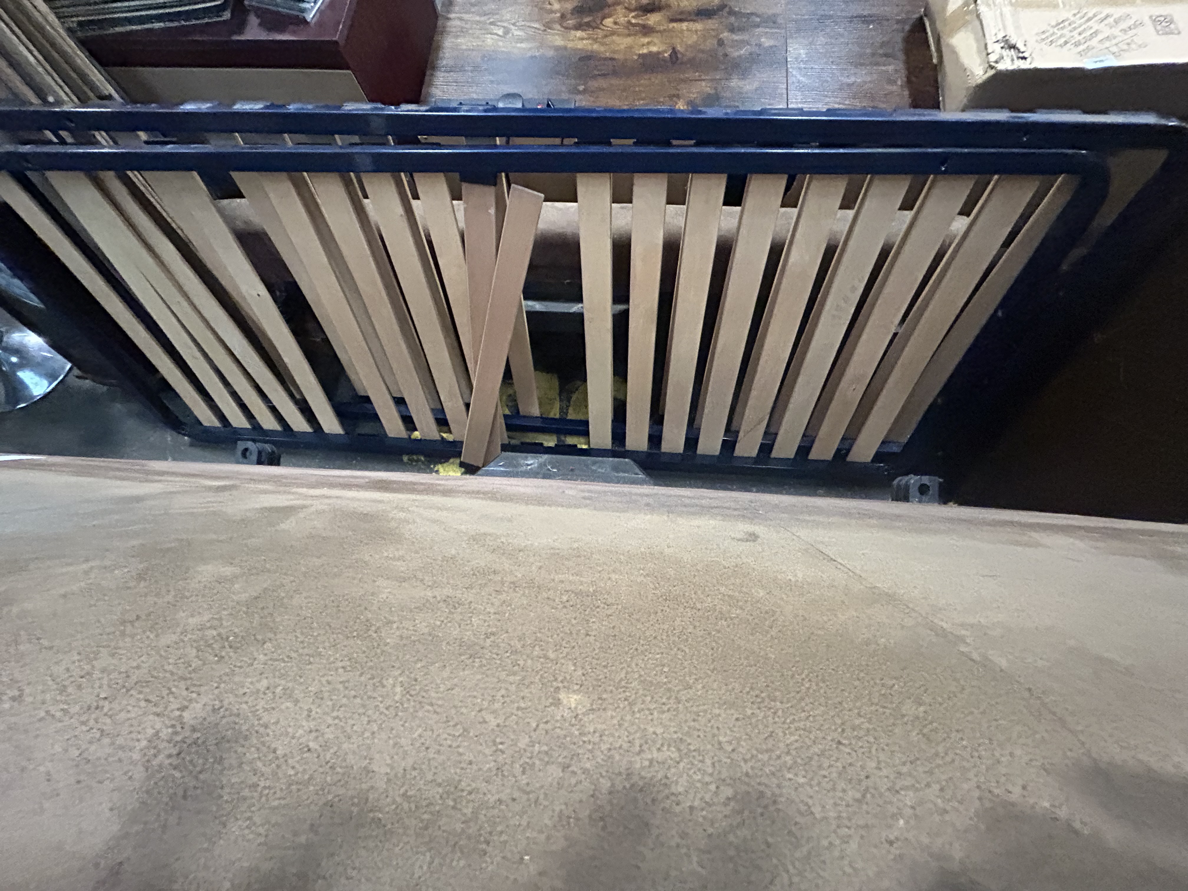 Lot 889: A contemporary upholstered headboard and metal slatted bed base