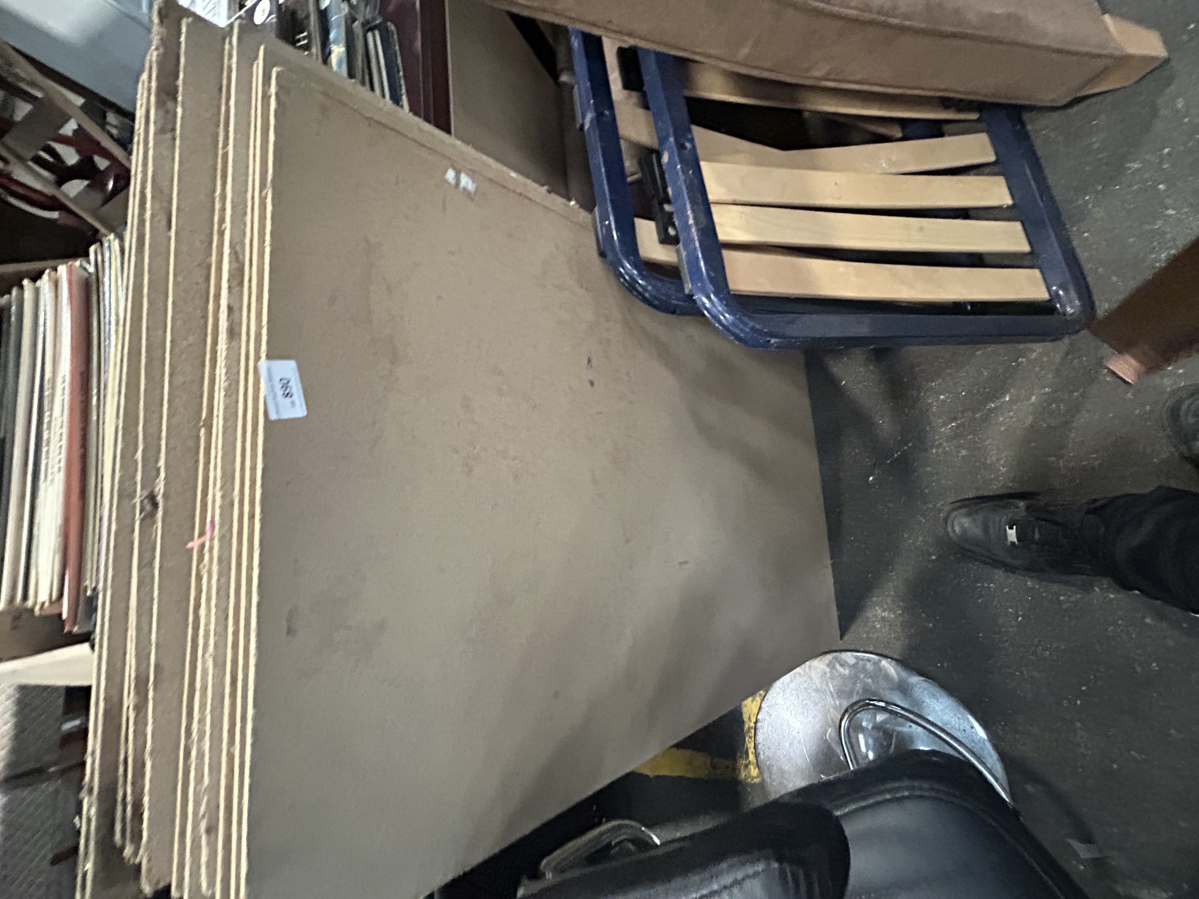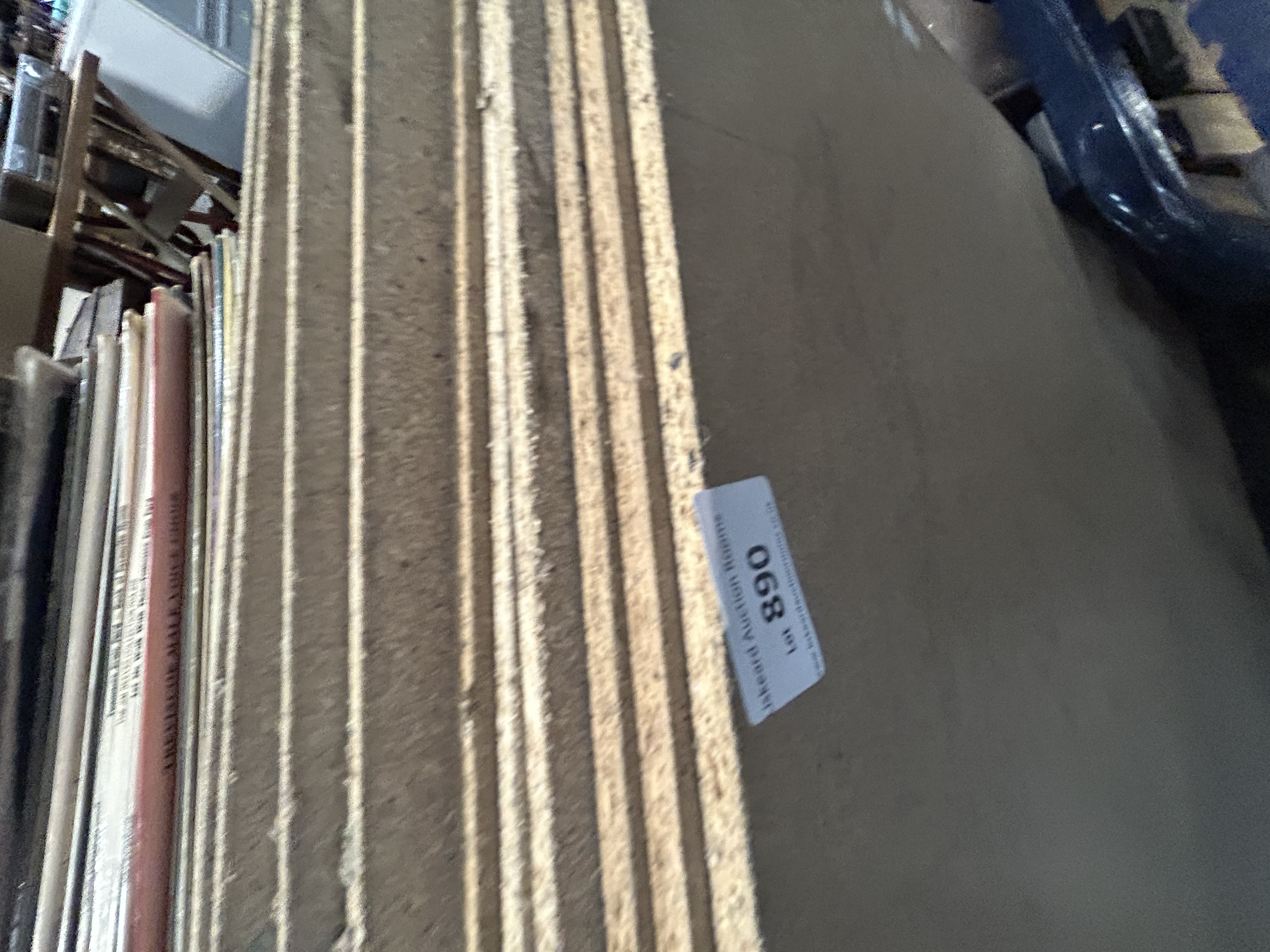 A collection of large rectangular furniture panels constructed from particle board with a smooth, neutral-toned laminate finish. The panels are of uniform size and feature exposed composite material at the edges, suggesting they are components for a modular shelving or storage unit. A lot sticker from Liskeard Auction Rooms, marked as lot 890, is adhered to one panel.