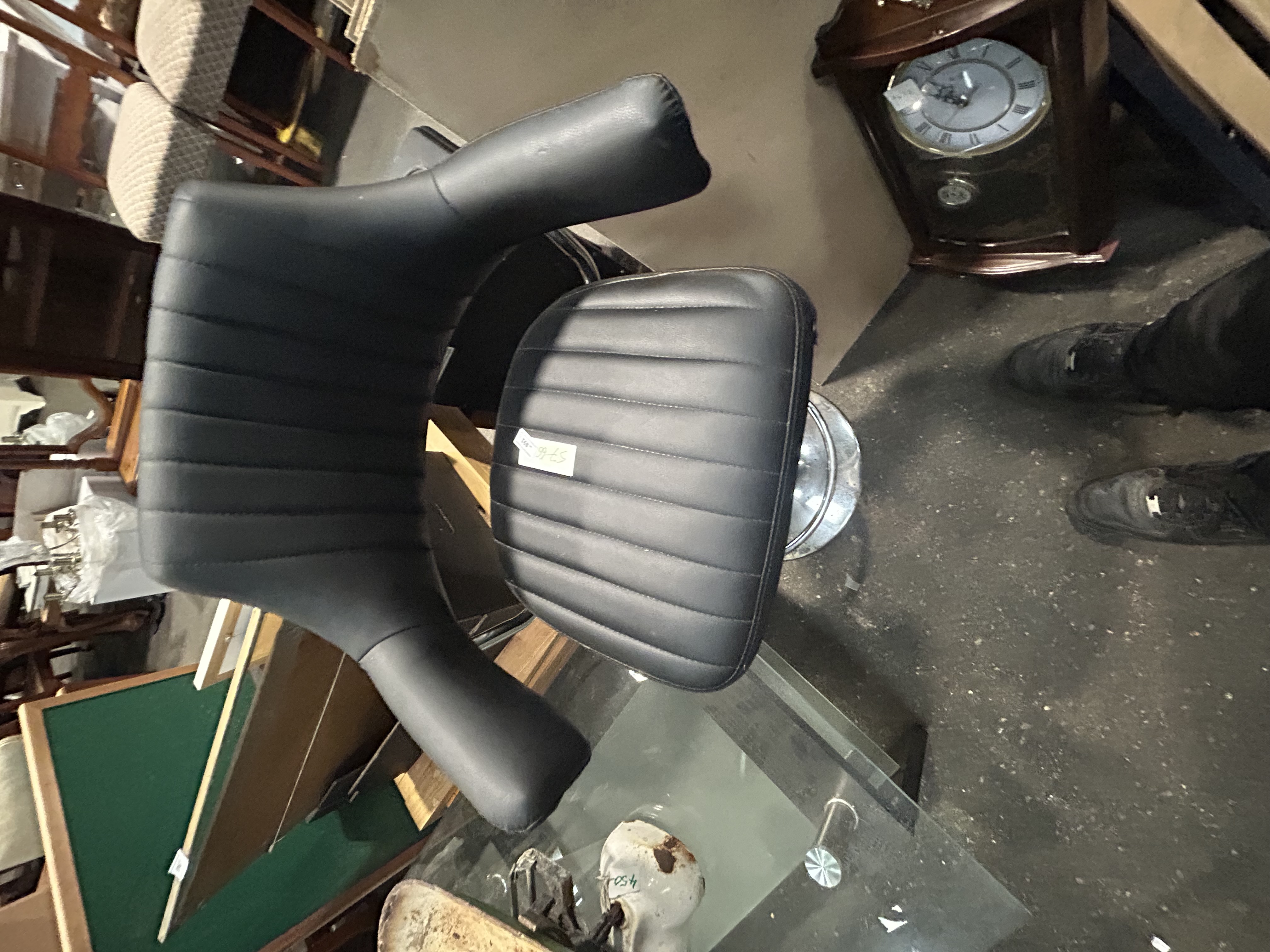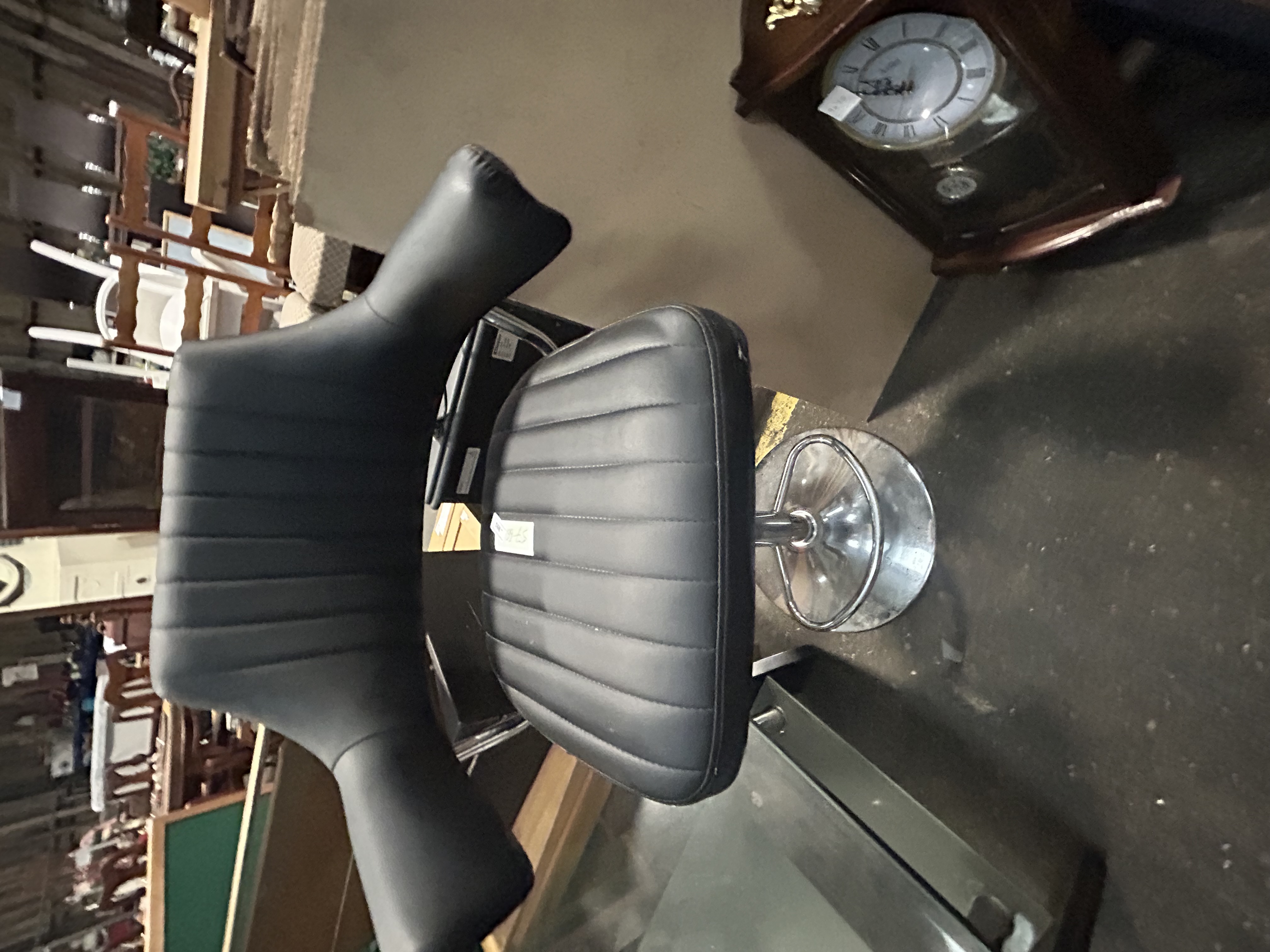 Lot 891: A Modern Chrome and Black Vinyl Swivel Bar Stool