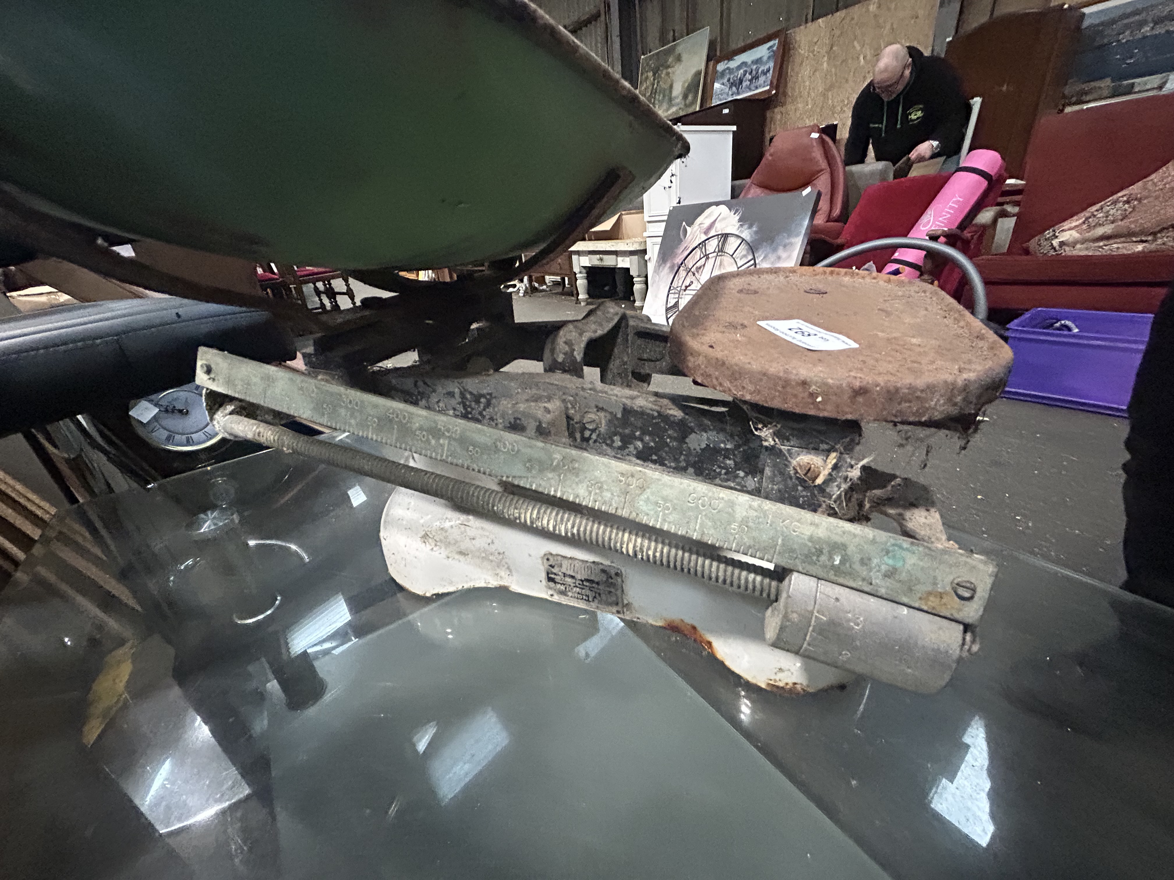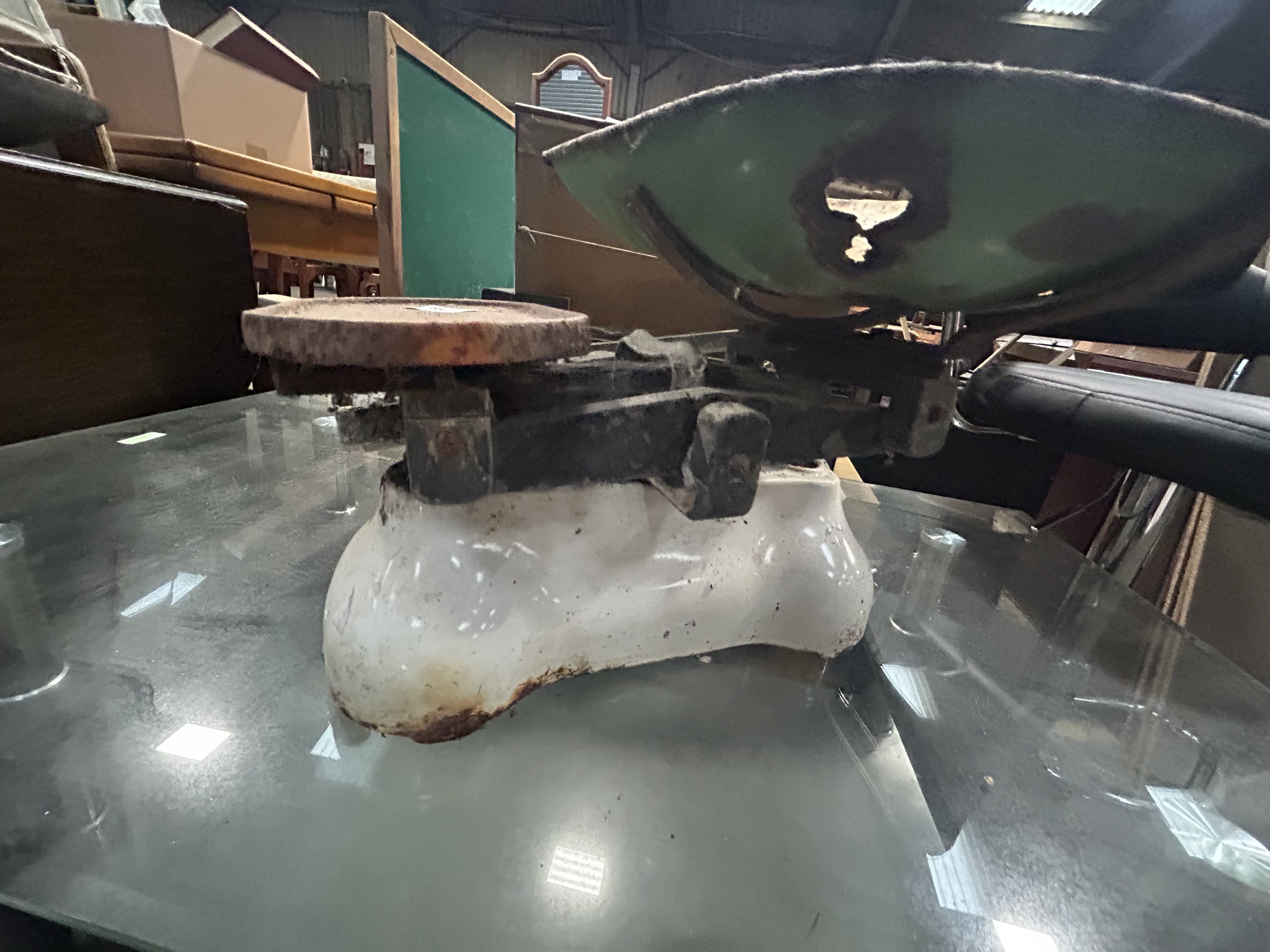Lot 892: A Vintage Whittaker of Willenhall Enamelled Cast-Iron Counter-top Beam Scale
