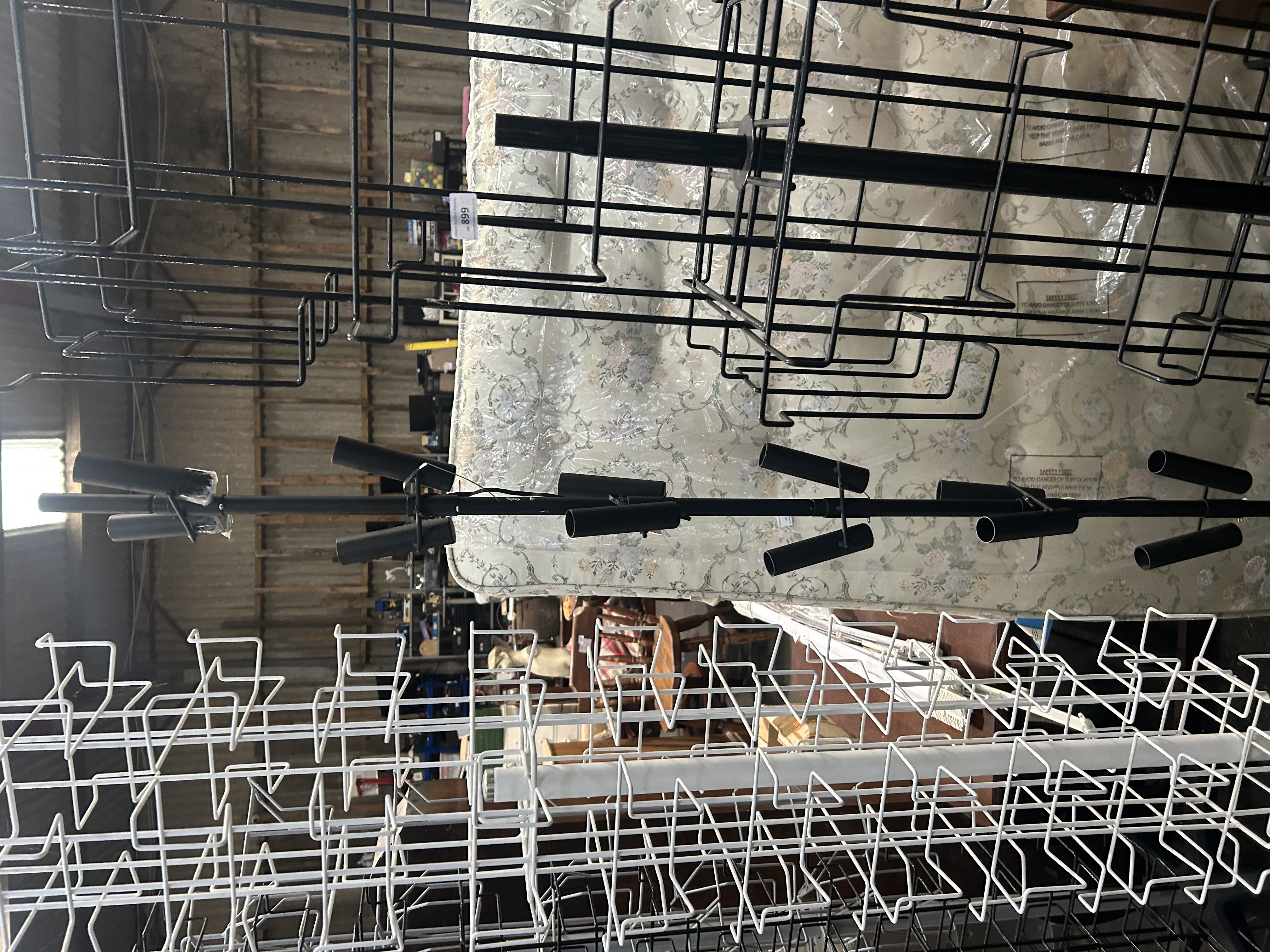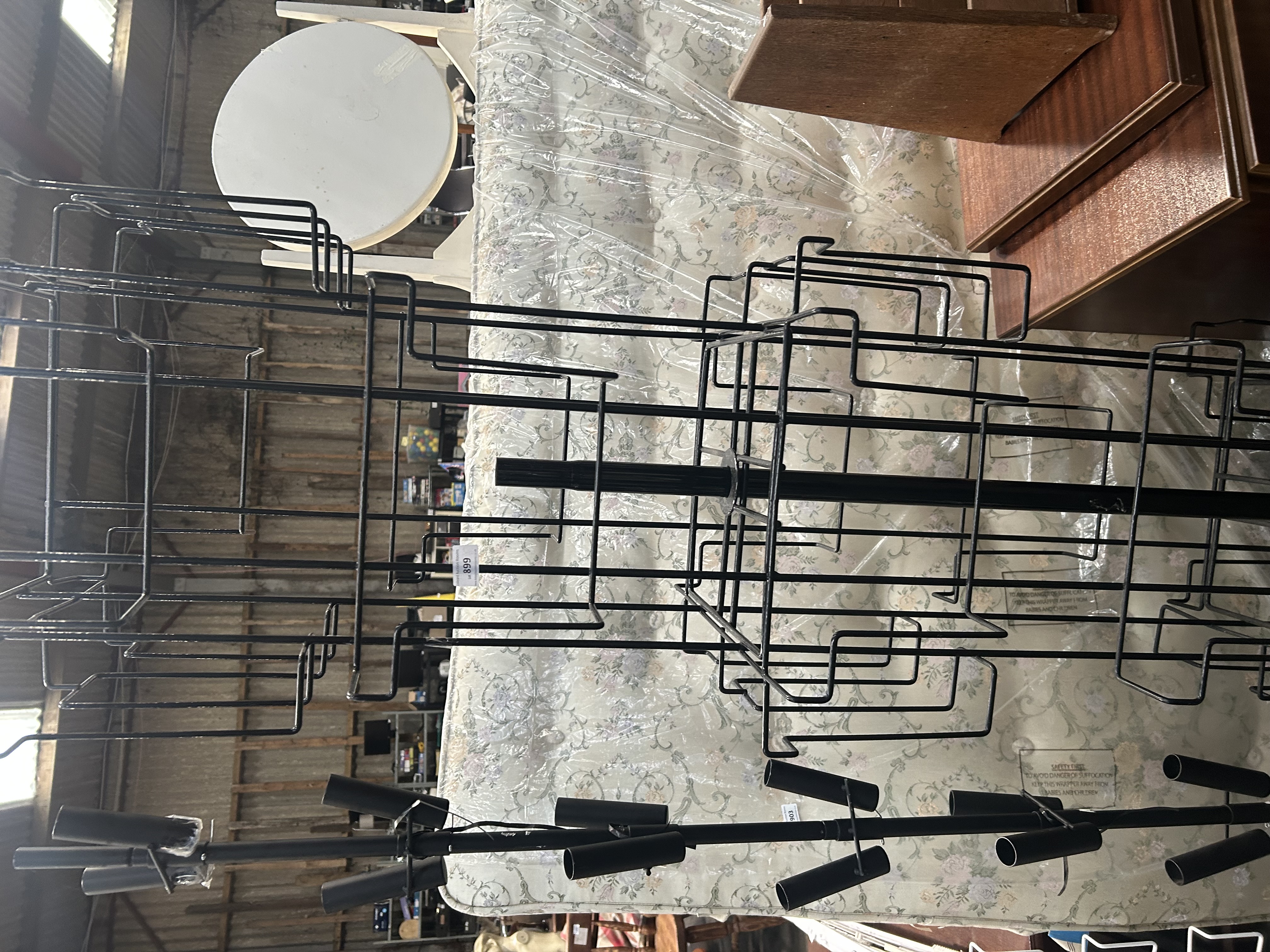 Lot 899: A Collection of Floor-Standing Rotating Wire Display Racks and a Multi-Head Spotlight Pole