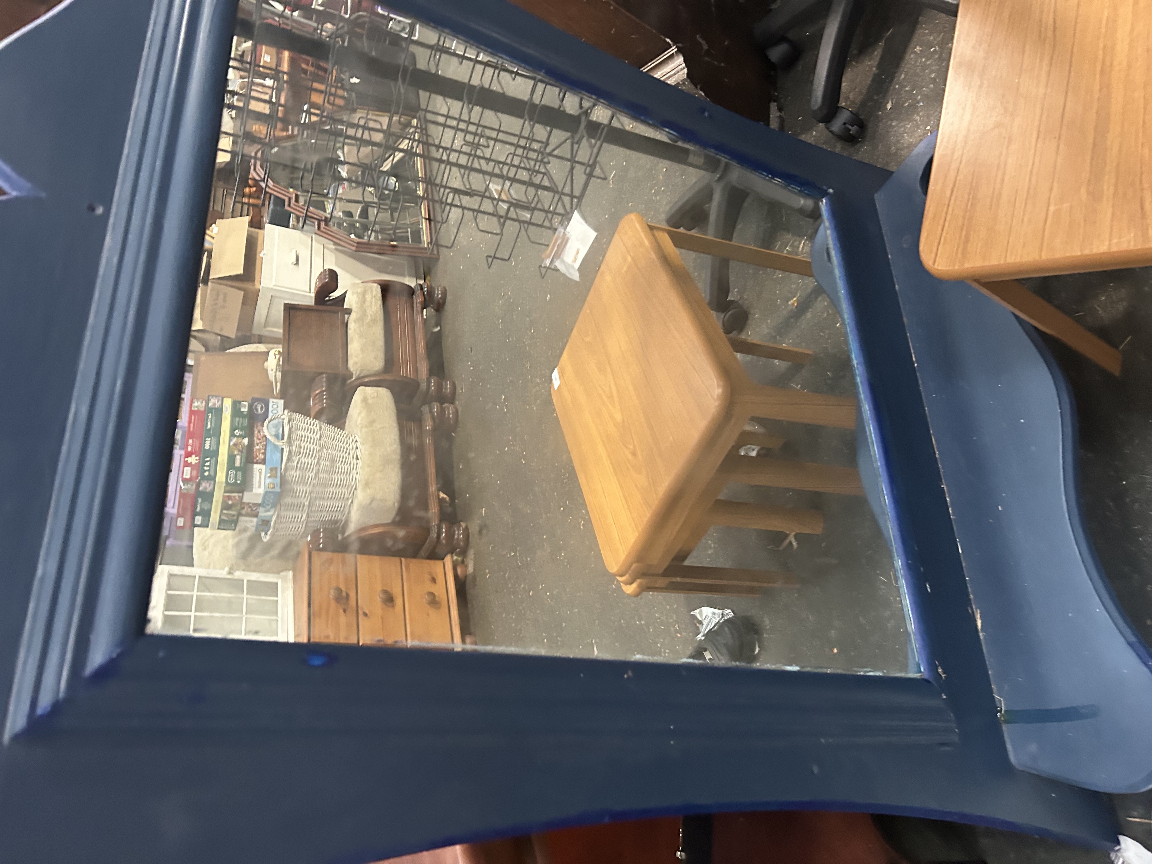 Lot 900: A Contemporary Navy Blue Painted Dressing Table Mirror in the Queen Anne Revival Style