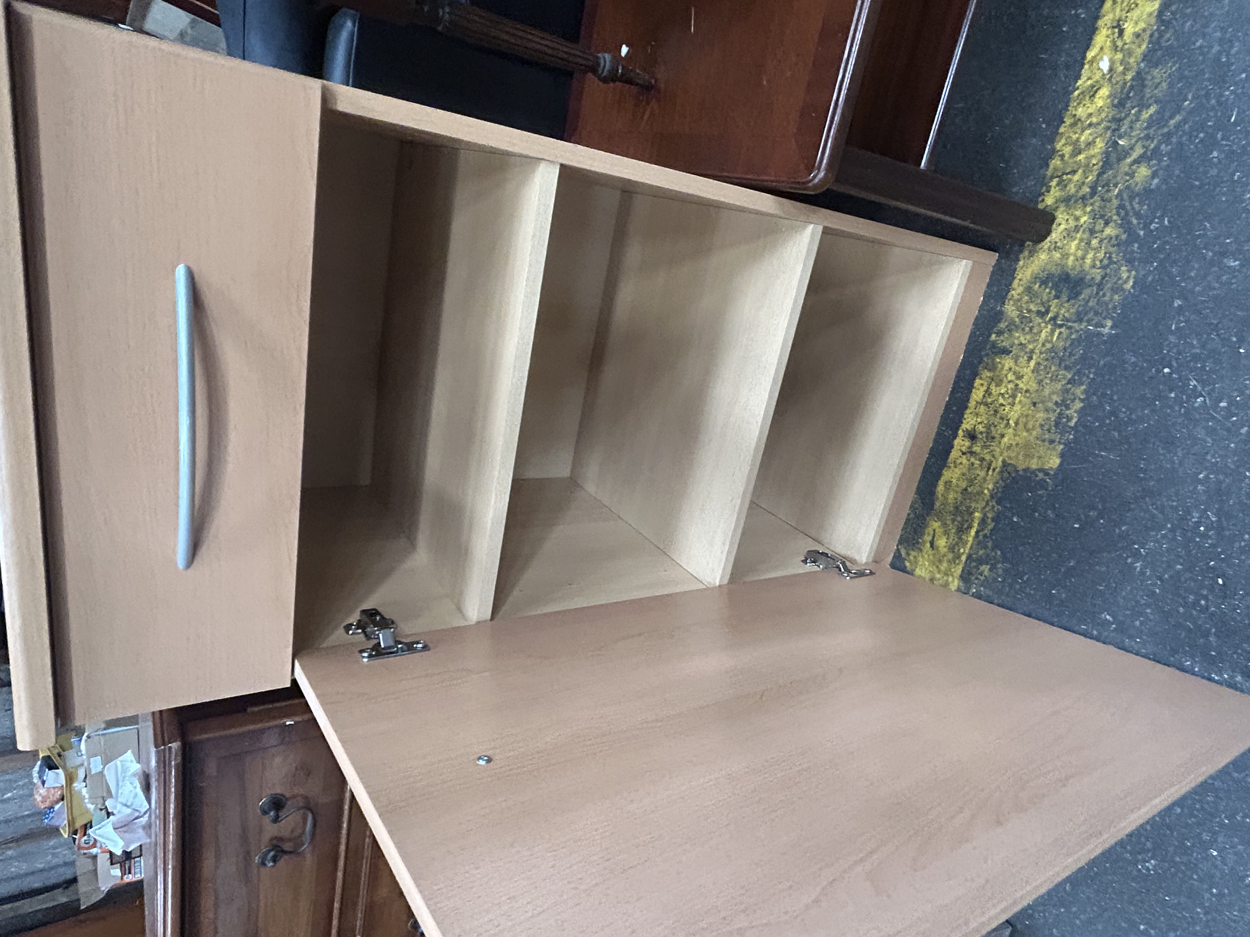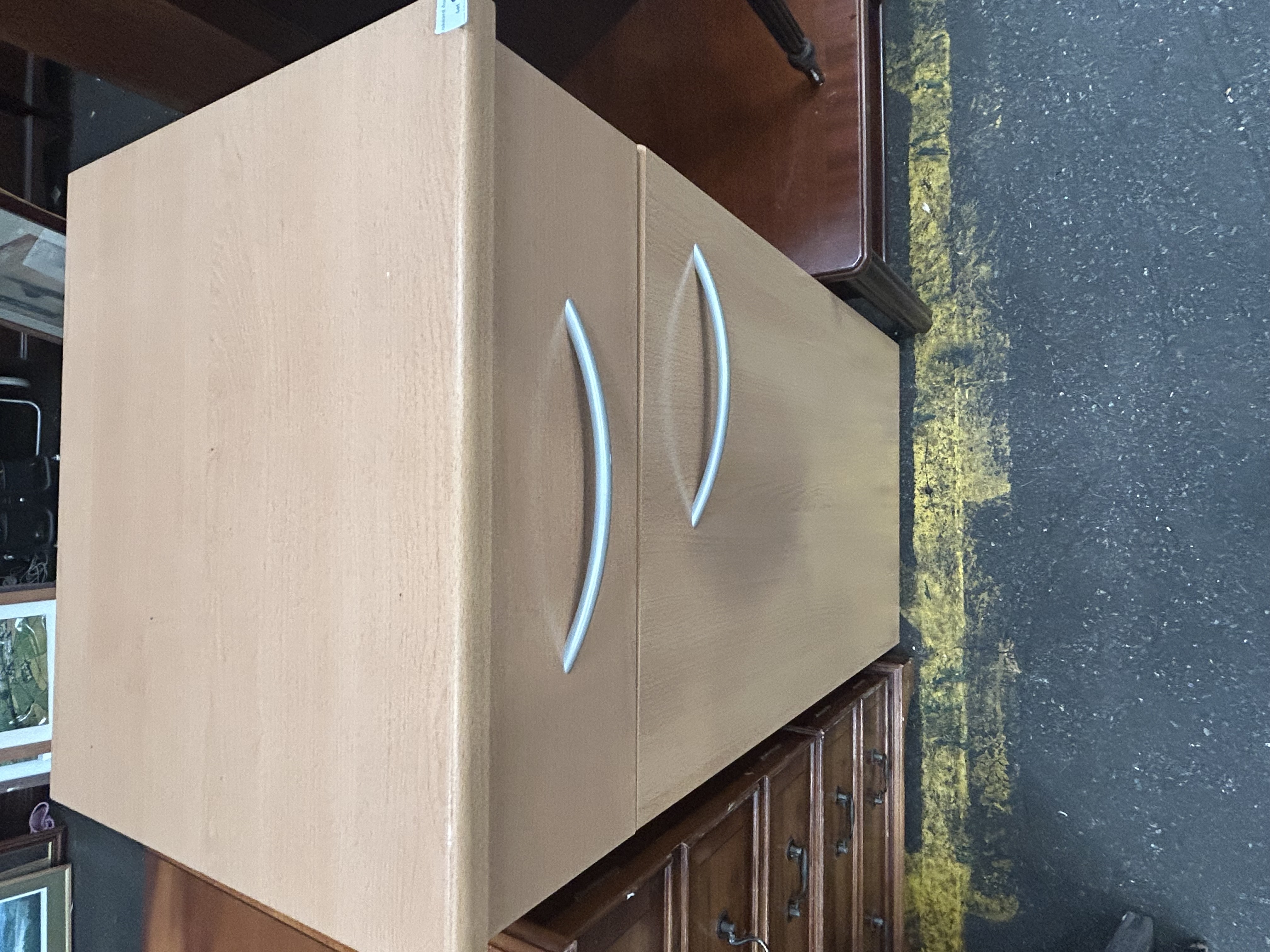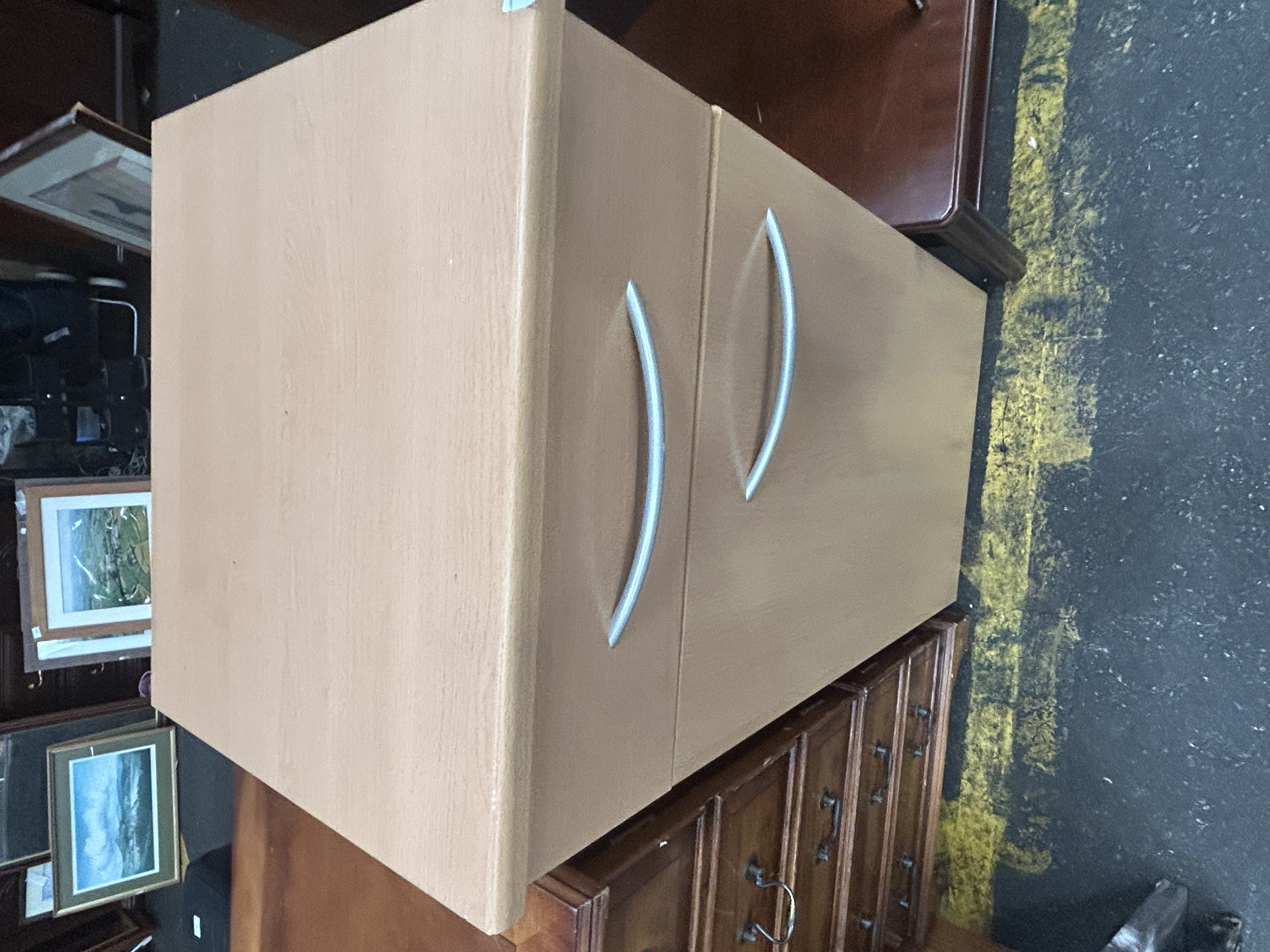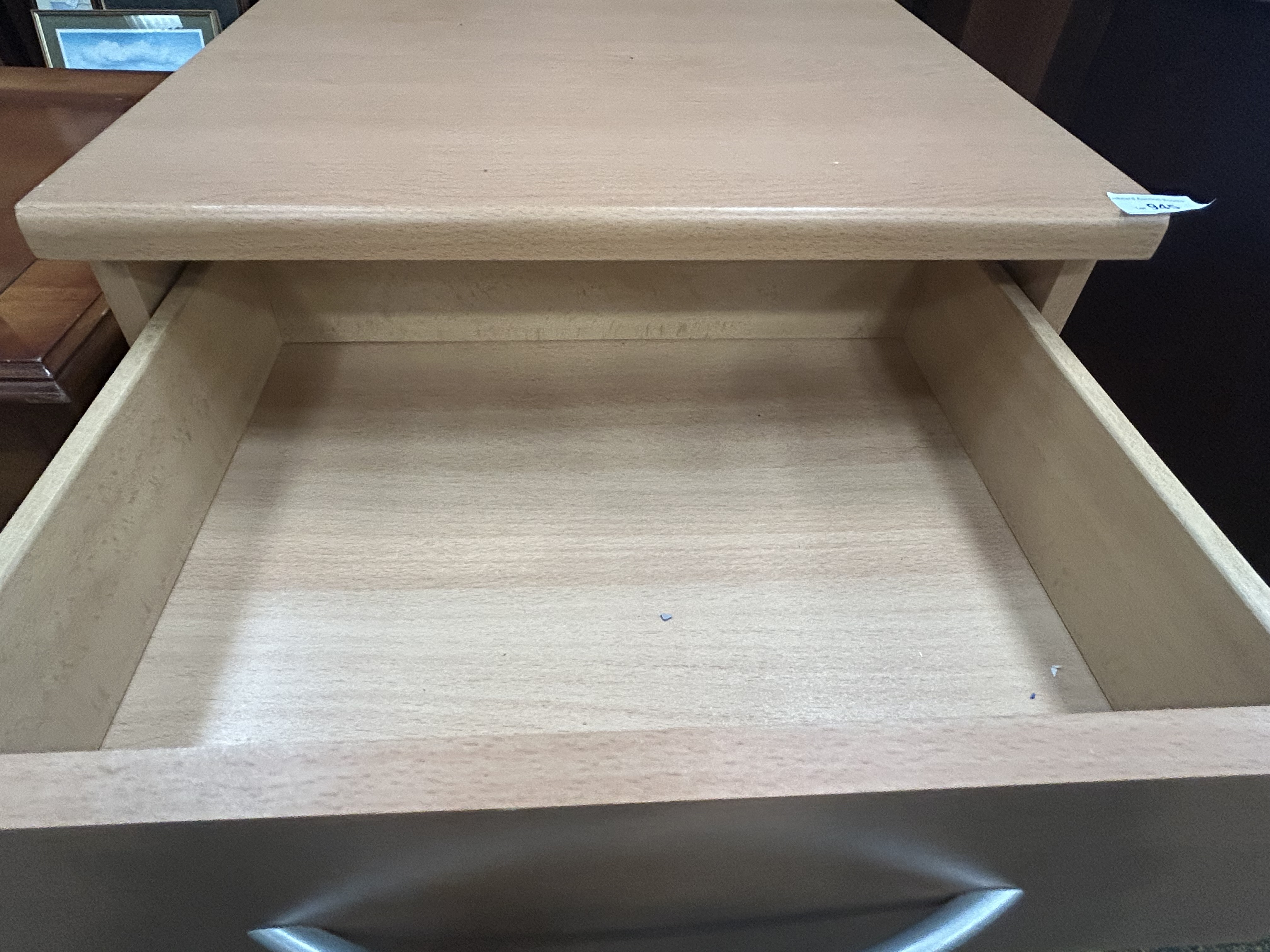 Lot 945: Contemporary Beech Effect Media Storage Cabinet with Single Drawer