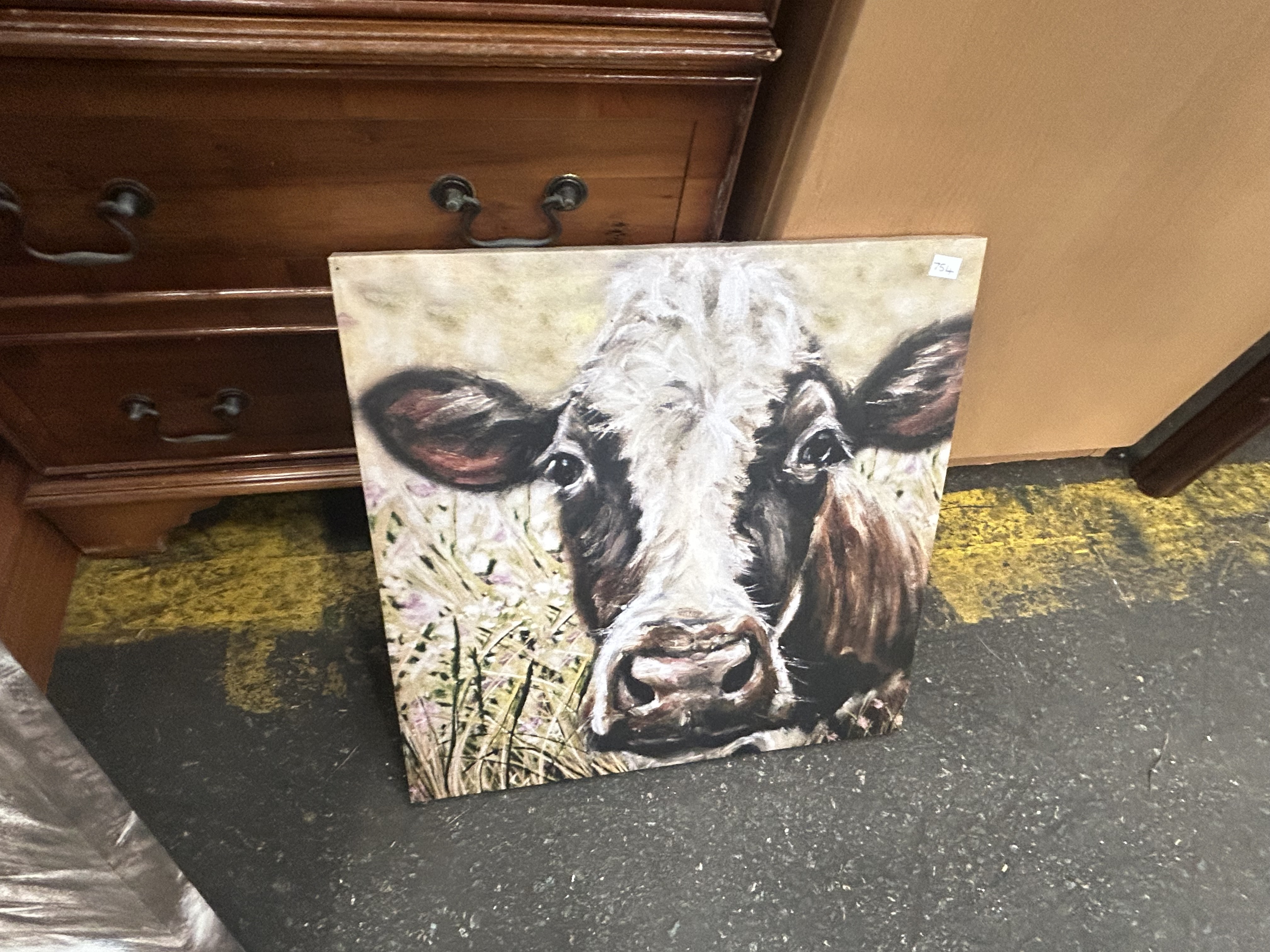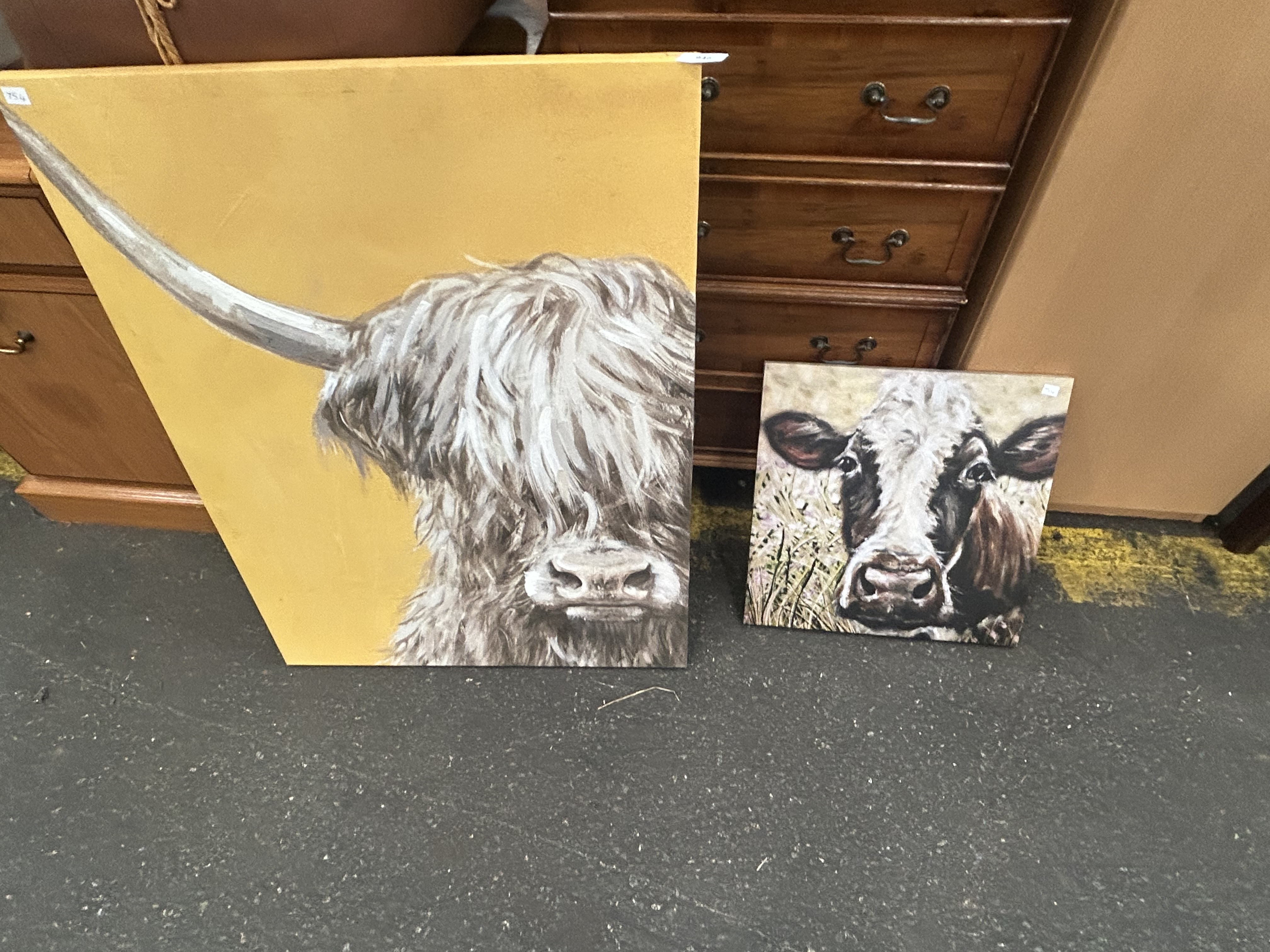 Lot 946: Two Contemporary Decorative Cow Studies on Stretched Canvas
