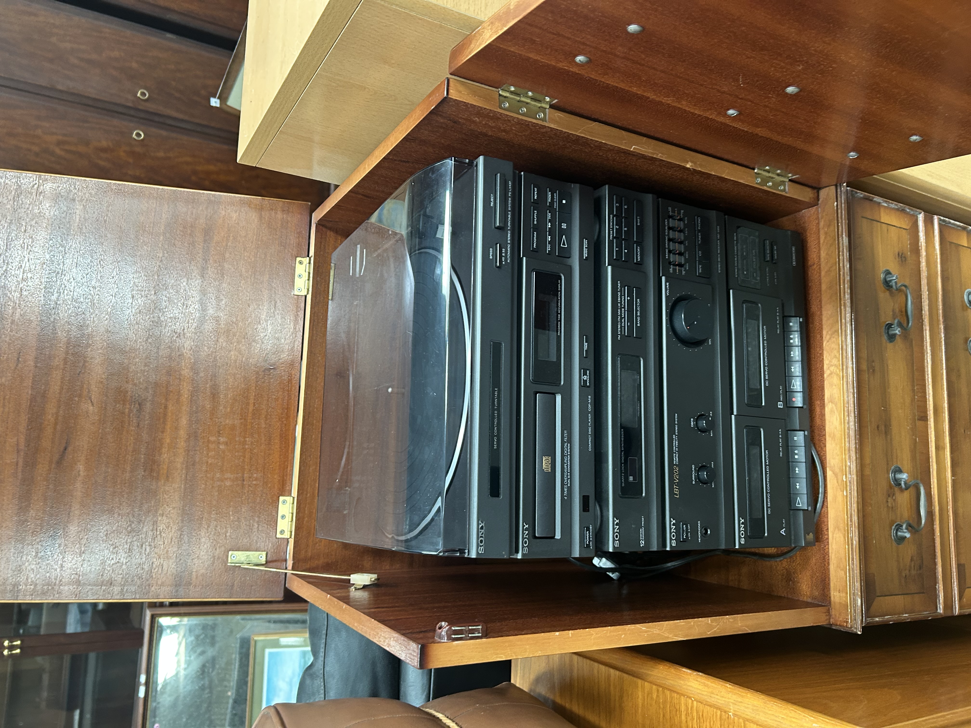 Lot 947: A Sony LBT-V202 Compact Hi-Fi Stereo System in a Reproduction Mahogany-Finish Cabinet