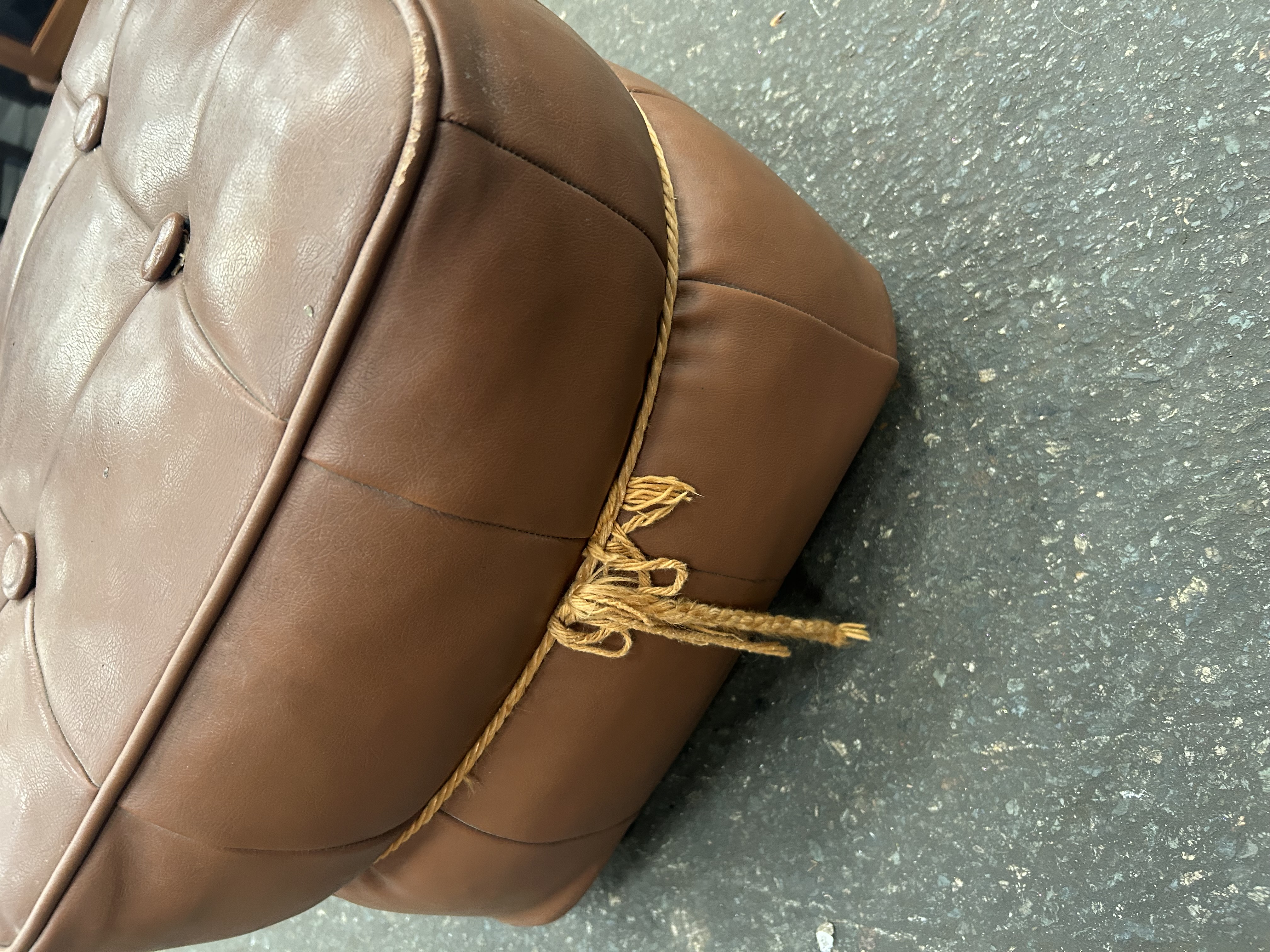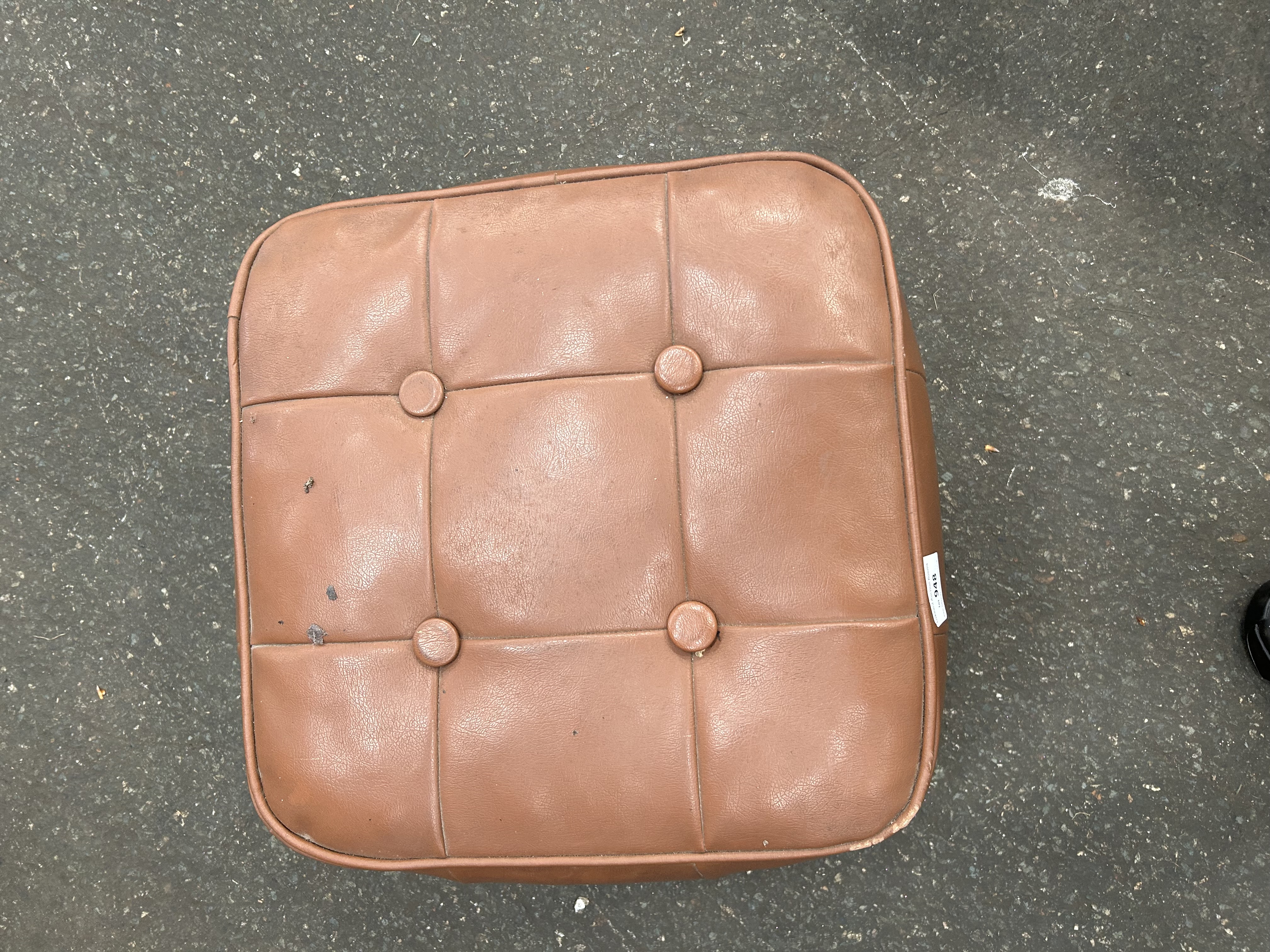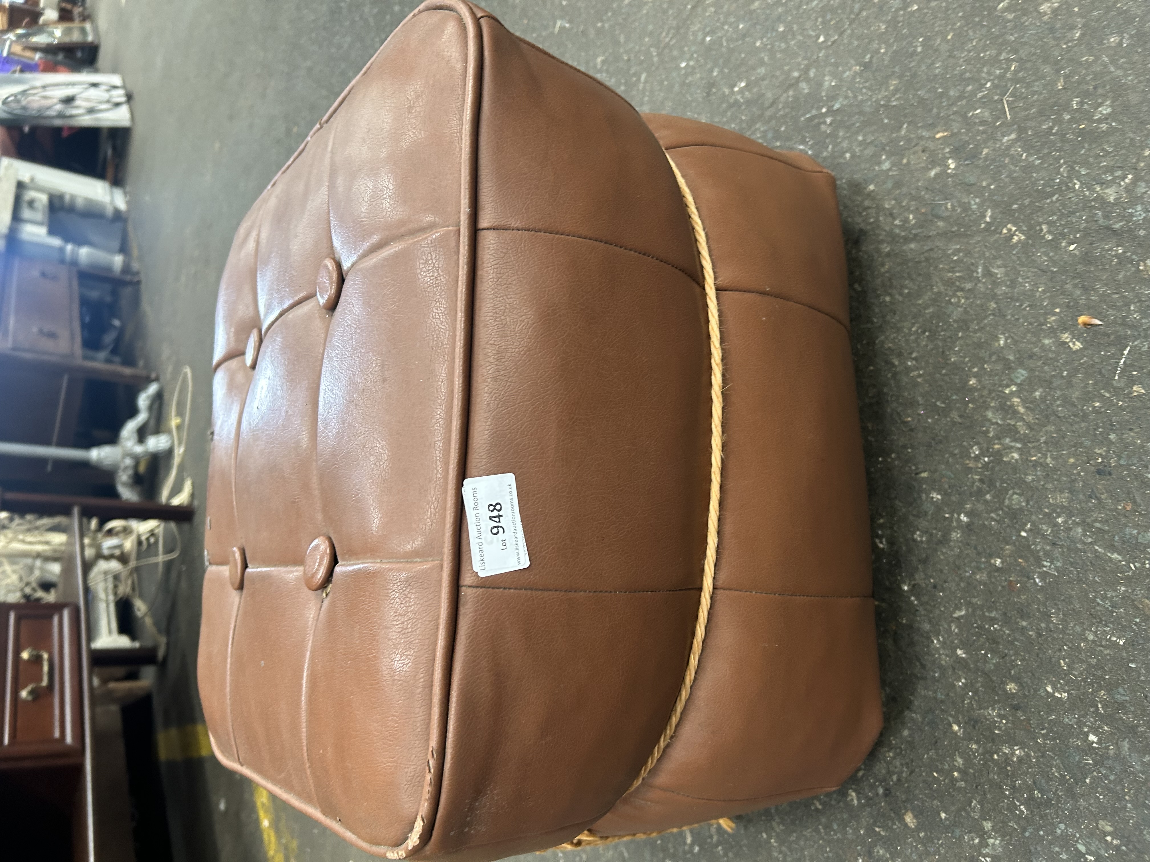 Lot 948: Mid-Century Tan Vinyl Tufted Ottoman by H.C. Hanley of Worcester Ltd.