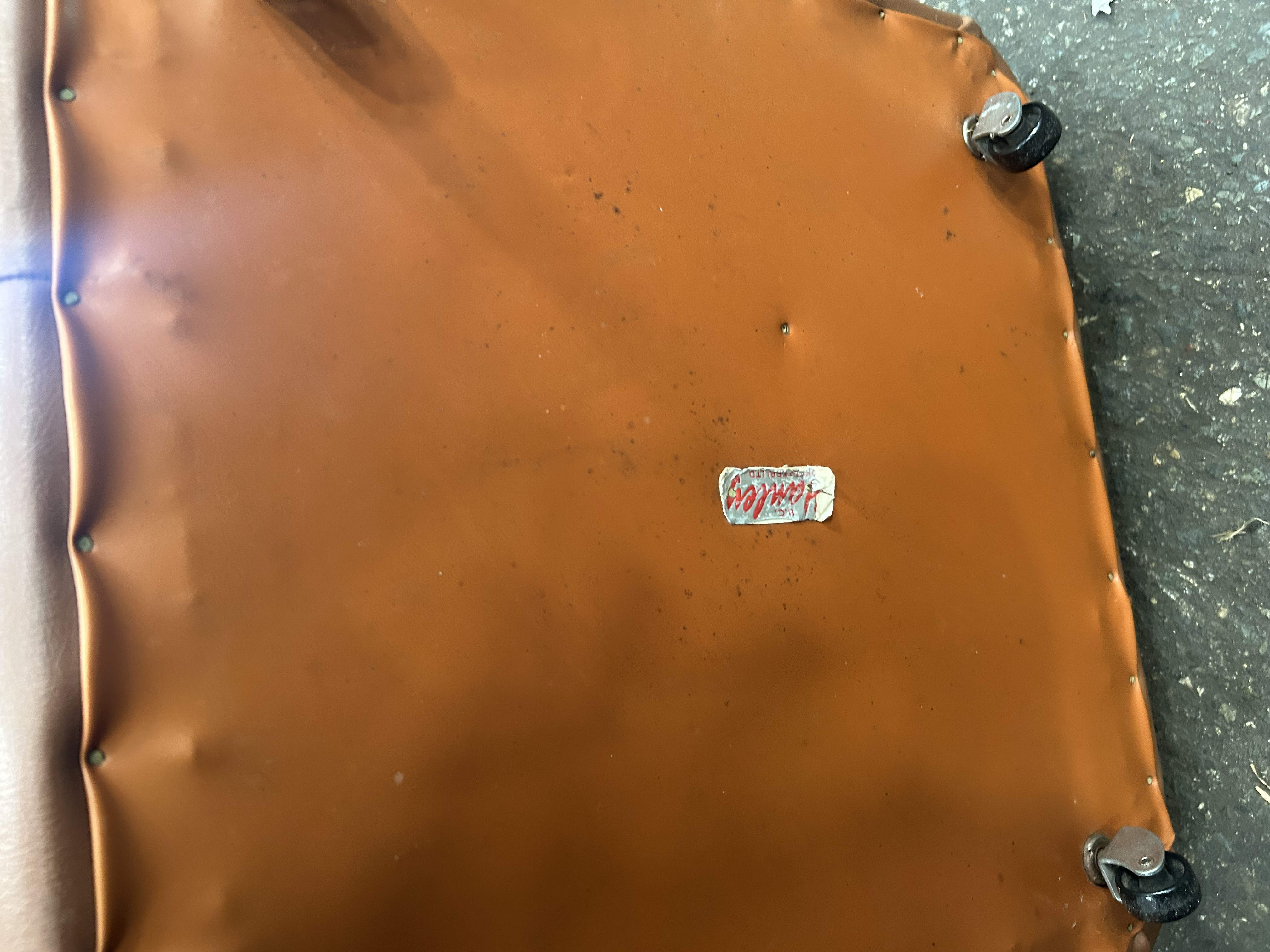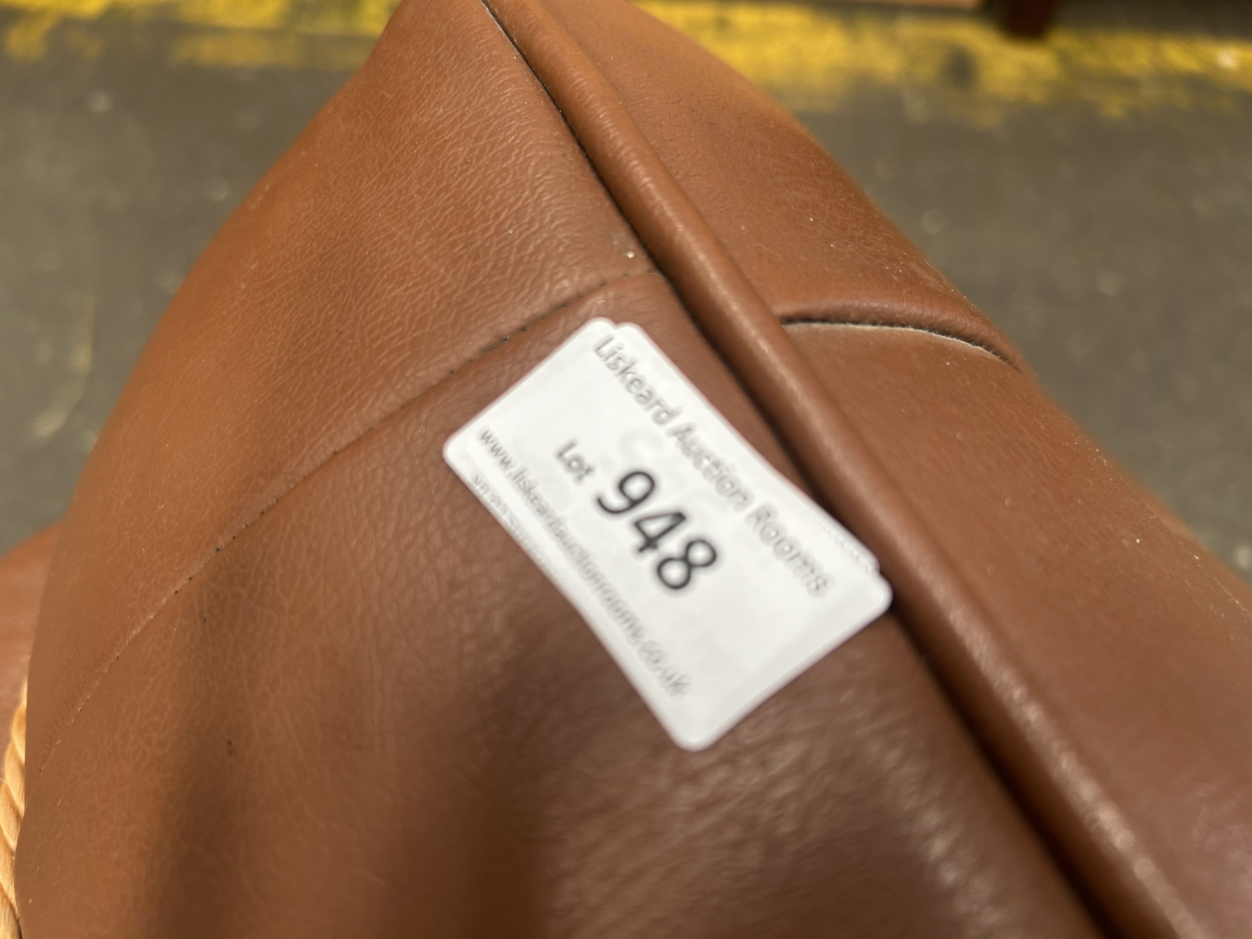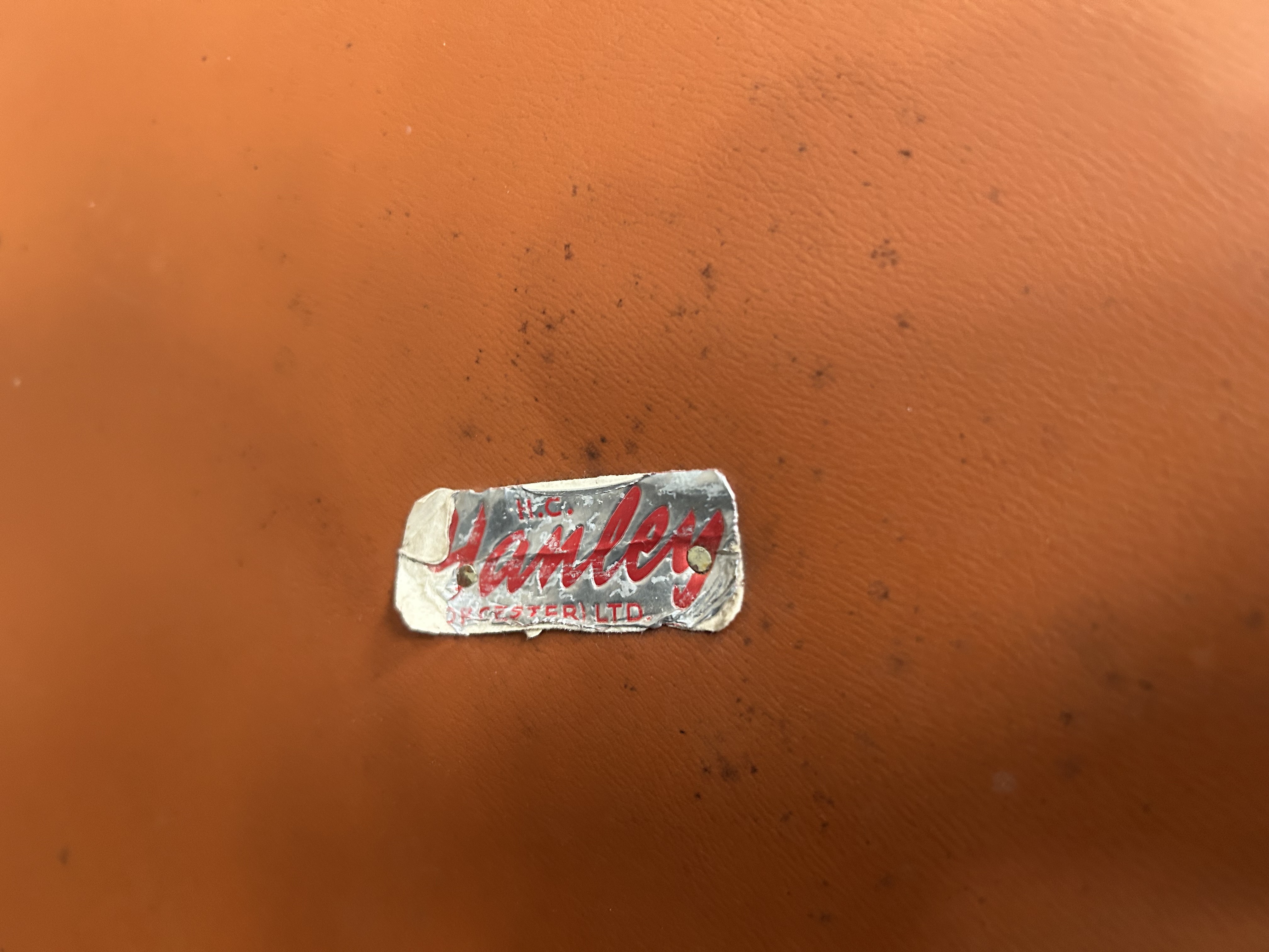 Lot 948: Mid-Century Tan Vinyl Tufted Ottoman by H.C. Hanley of Worcester Ltd.