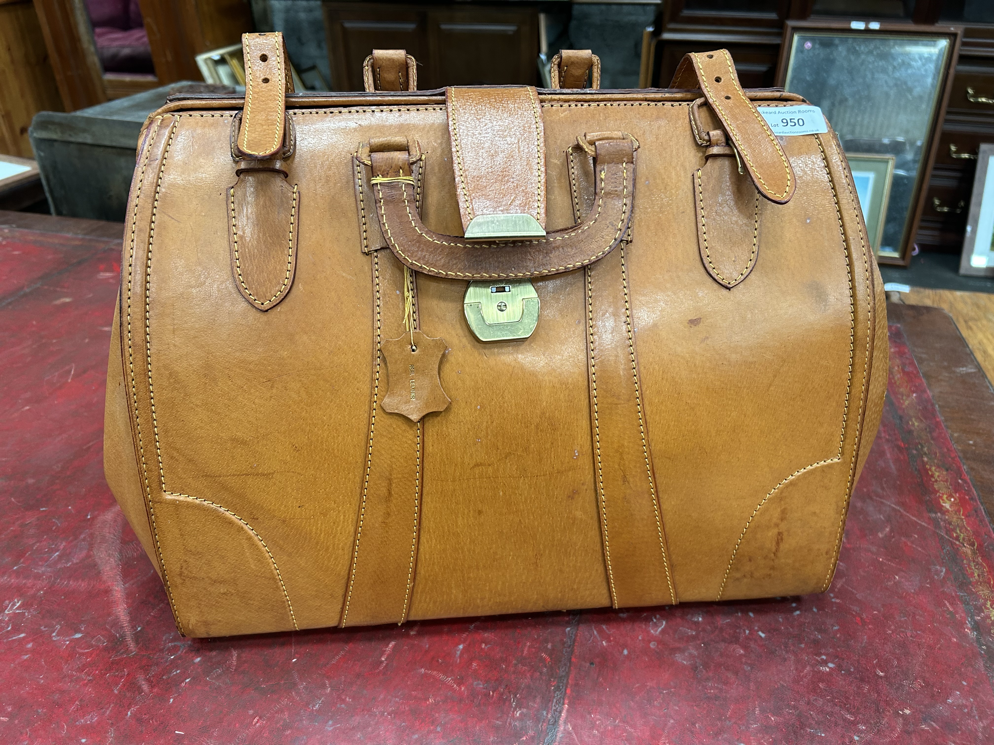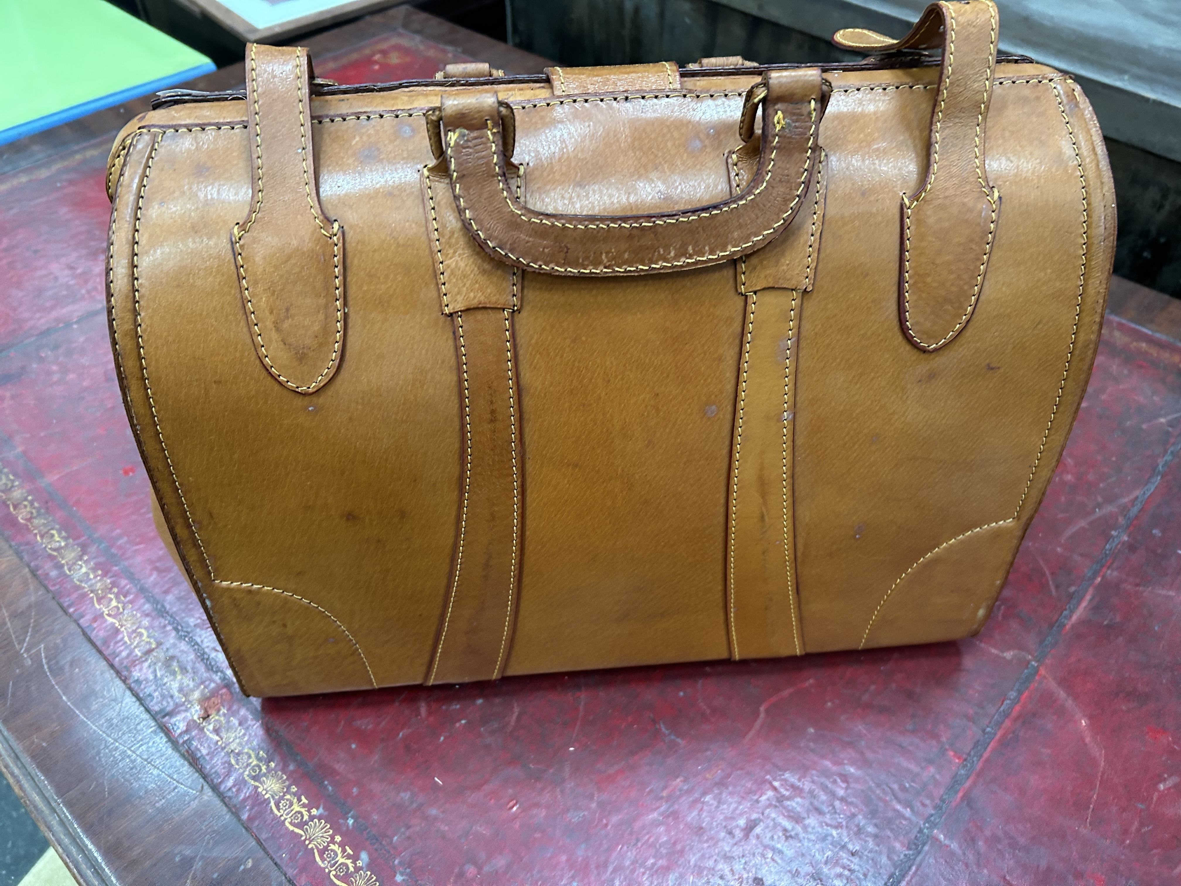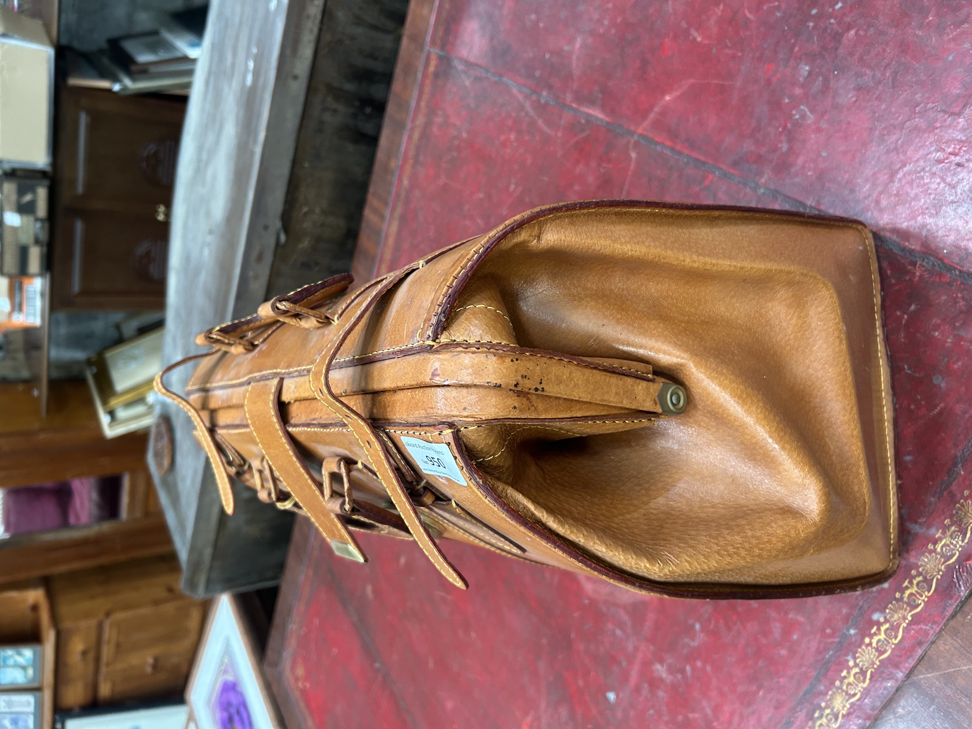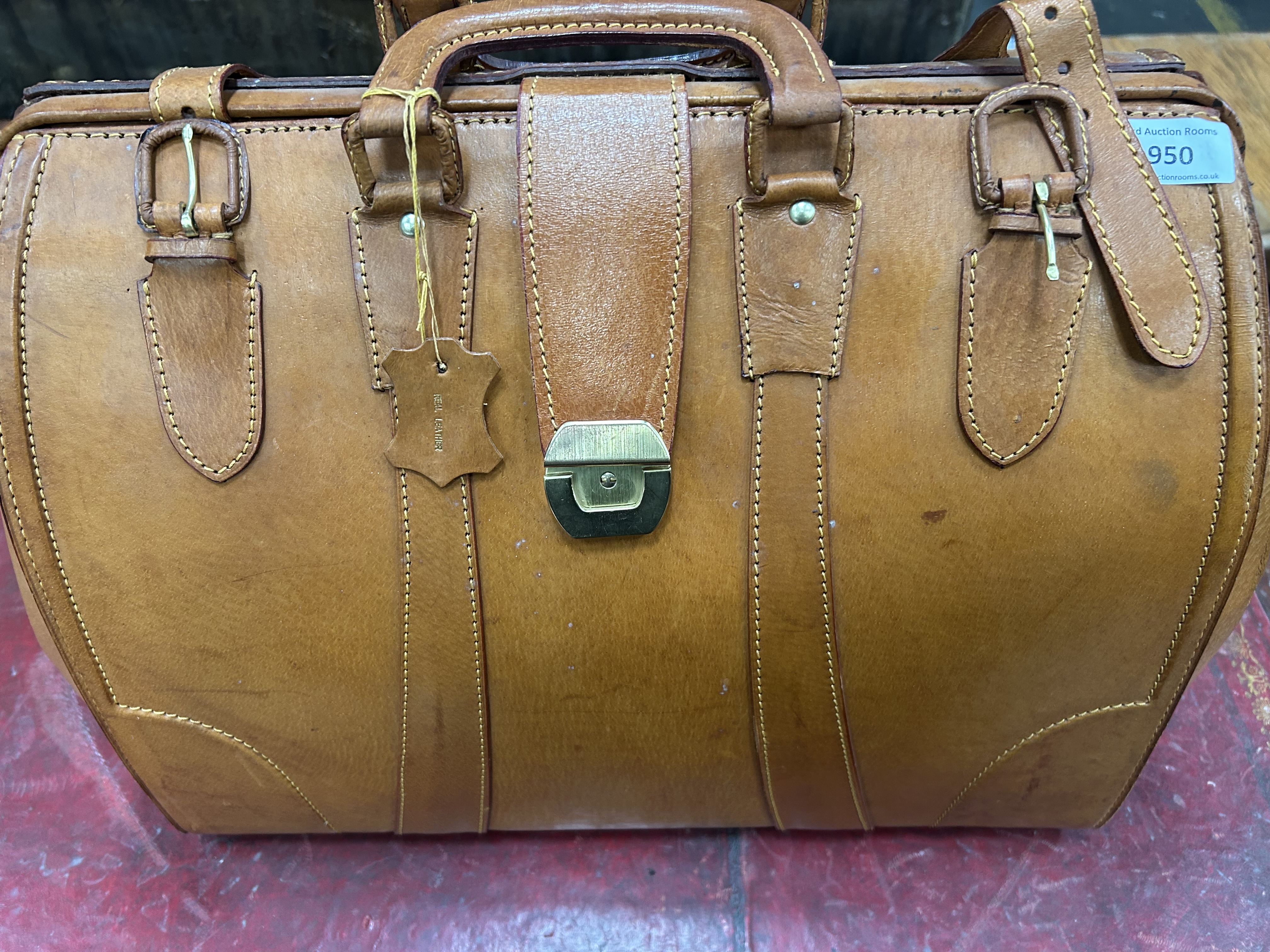 Lot 950: Vintage Bruno Conti Style Vintage Tan Leather Gladstone Style Travel Bag / Doctor's Holdall