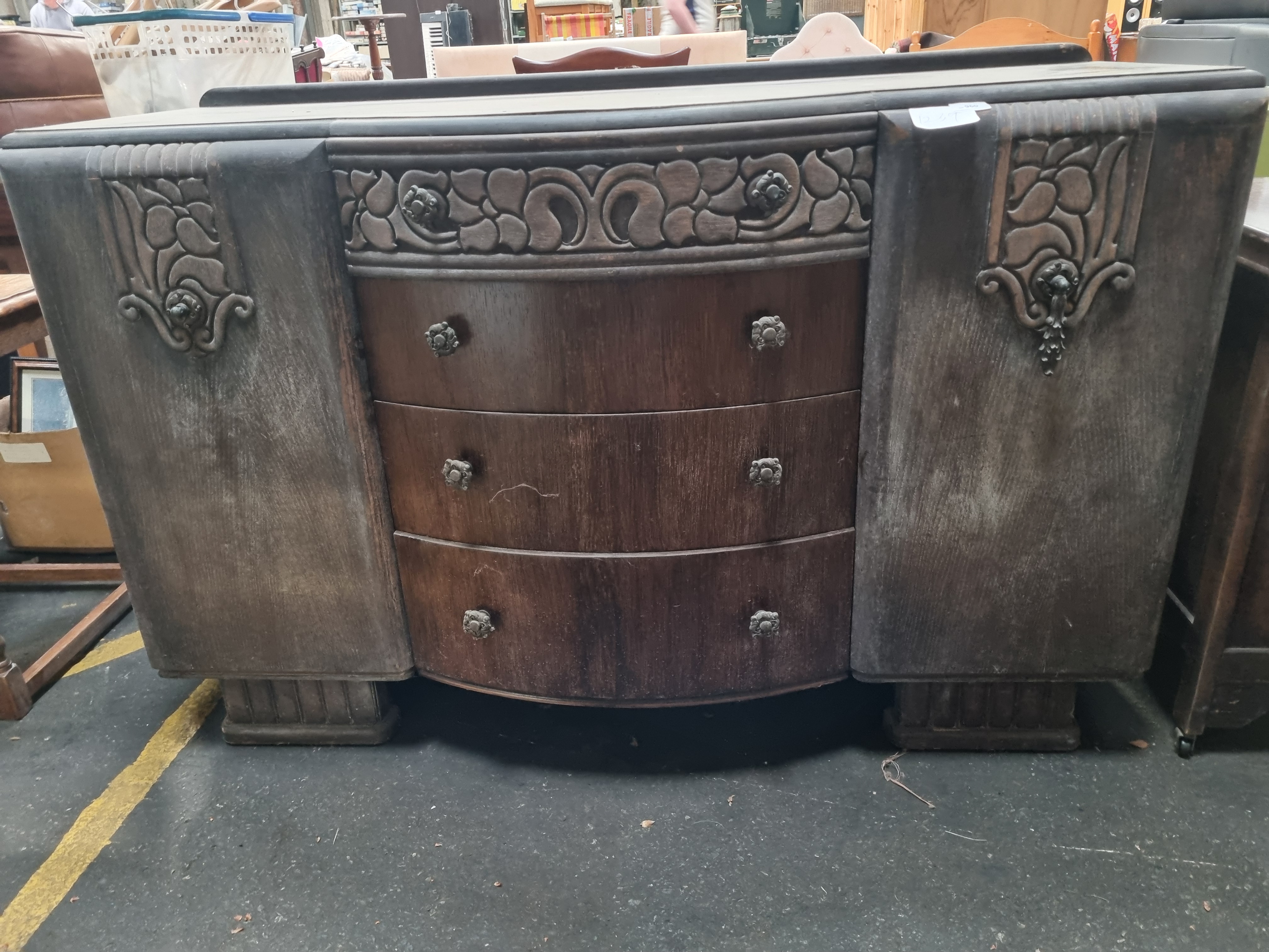 Lot 960: An Art Deco carved oak bow-fronted sideboard