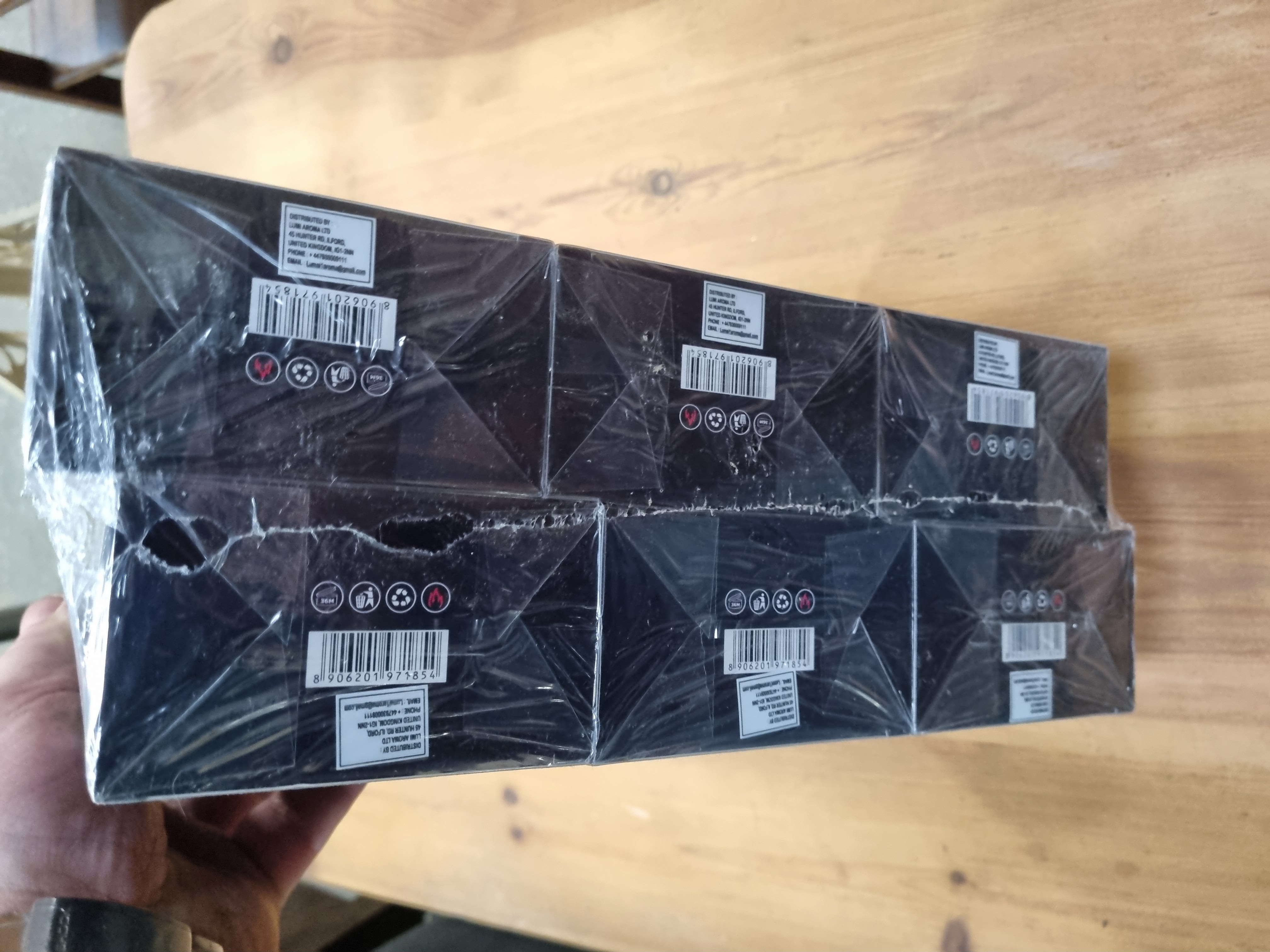 A collection of Suave Special Edition Eau De Parfum, a fragrance produced by Fragrance World. Each unit is a 100ml (3.4 fl.oz) natural spray with an alcohol concentration of 80 percent volume. The packaging features a dark, vertically-ribbed box design with the brand name Suave and Special Edition text. A logo comprising a crown over the letters RP is visible on the front and top of each box. The base of the packaging identifies the distributor as Lumi Aroma Ltd, based in Ilford, United Kingdom, and includes the barcode 8906201971854.