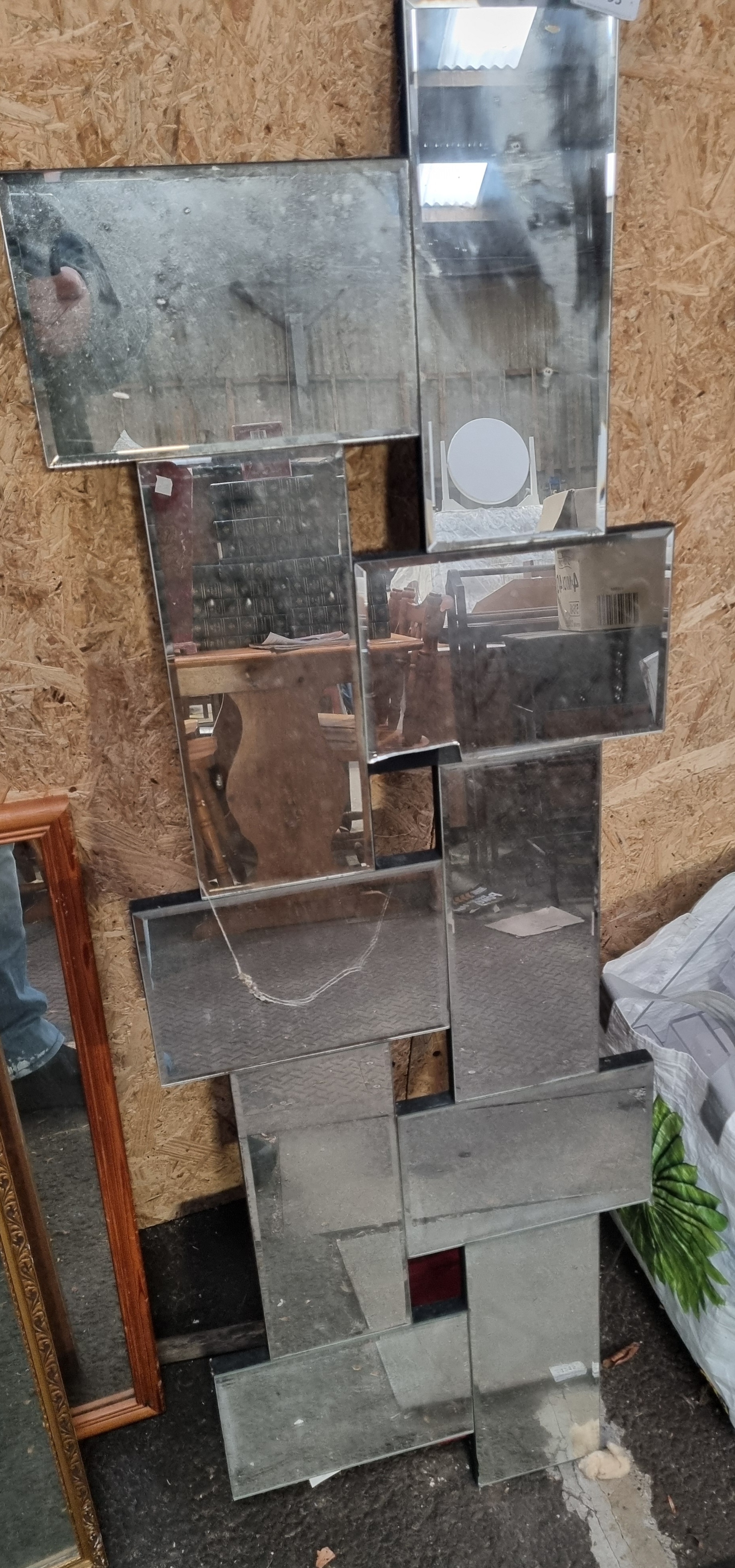 Lot 995: Two items: a modernist multi-panelled wall mirror in the style of Neal Small and a framed study of a church